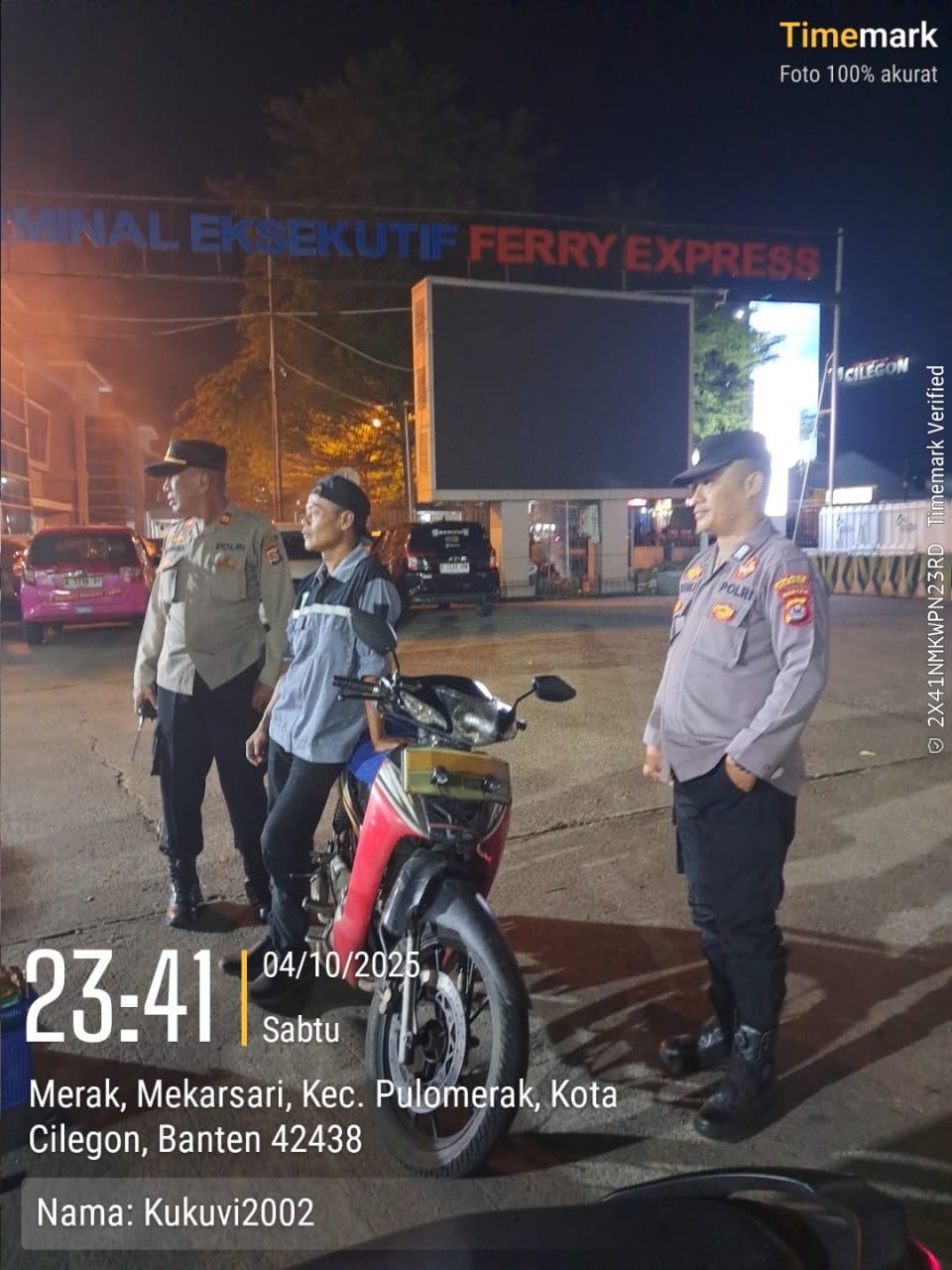 Cilegon - Personel Polsek Kskp Merak Polres Cilegon Polda Banten melaksanakan sambang dan patroli kawasan pelabuhan merak dalam rangka menjaga Harkamtibmas di Kawasan Pelabuhan Merak, Minggu (05/10/2025).Kapolres Cilegon Polda Banten AKBP Martua Raja Taripar Laut Silitonga melalui Kapolsek Kskp Merak Polres Cilegon Polda Banten AKP Gusti Almasri P menerangkan bahwa...