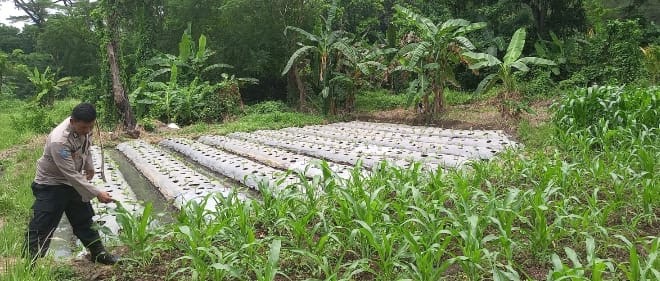 monitoring lahan jagung pok tani sinarjaya kecamatan.puloampel Desa puloampel oleh Bhabinkamtibmas Polsek Puloampel
