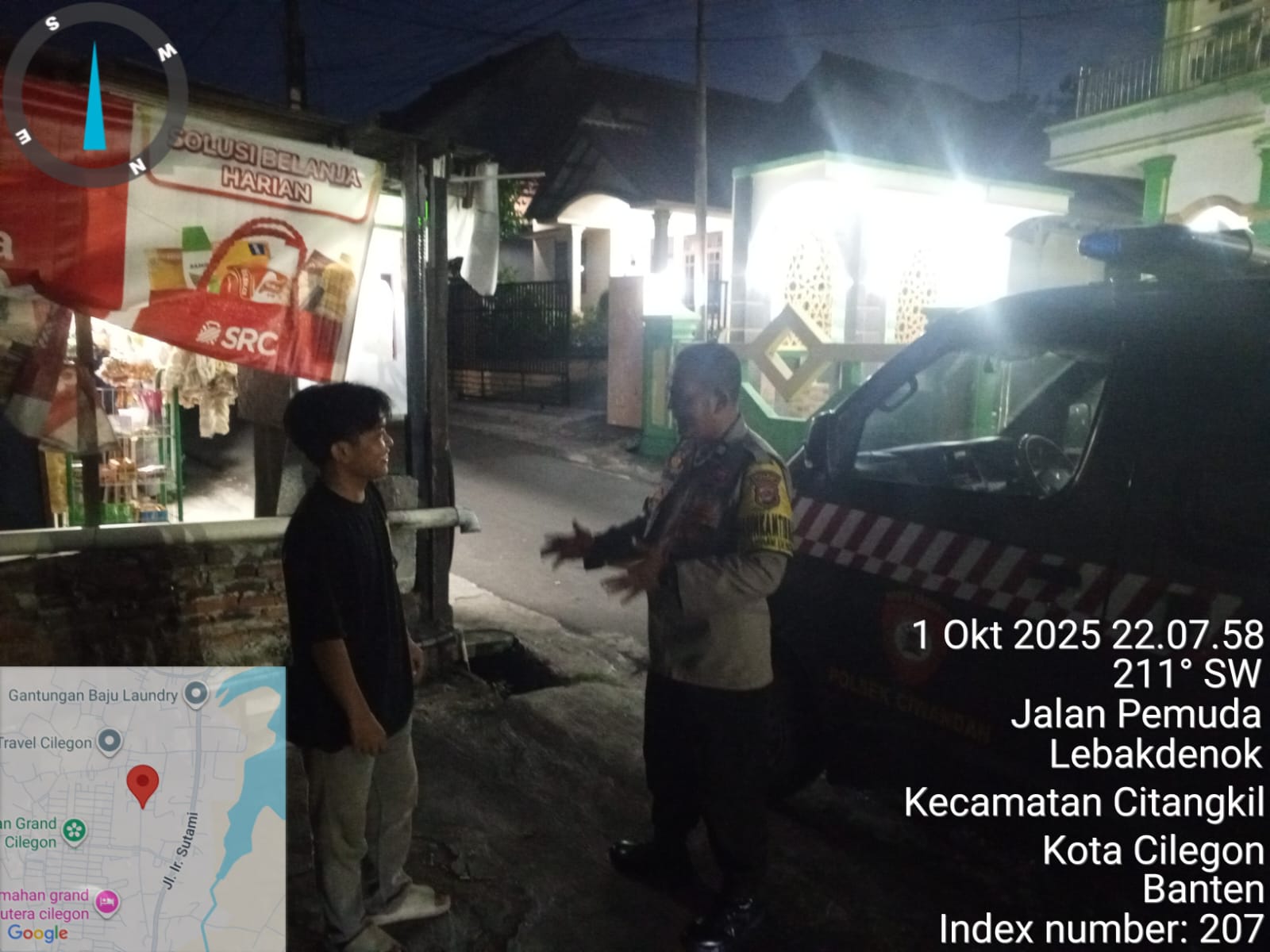 Cilegon - Personil Polsek Ciwandan Ciptakan situasi keamanan dan ketertiban di masyarakat (Kamtibmas) yang aman kondusif Dengan Melaksanakan kegiatan patroli malam guna mencegah gangguan kamtibmas dan kejahatan jalanan, Kamis (02/10/2025).