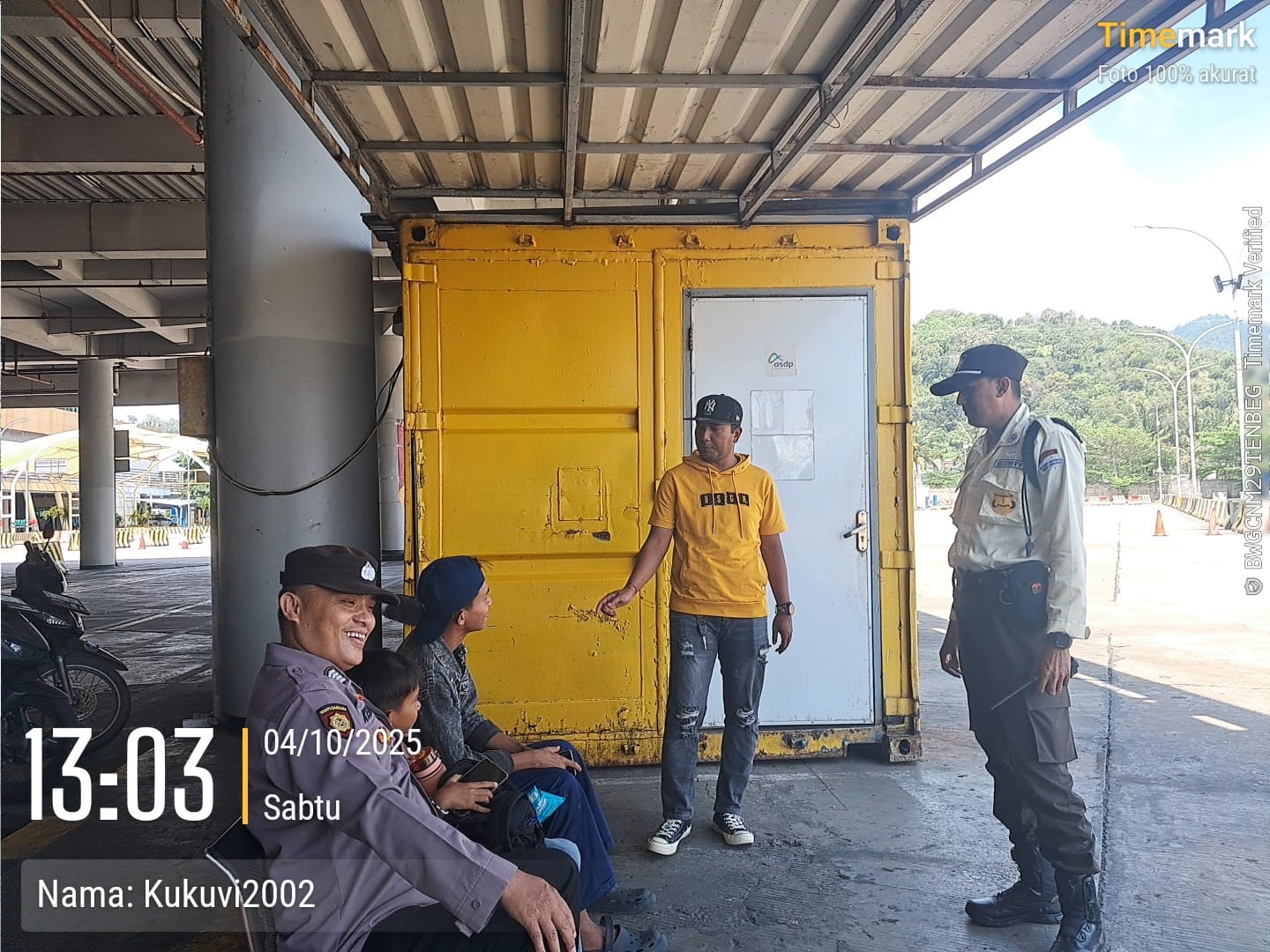 Cilegon - Personel Polsek Kskp Merak Polres Cilegon Polda Banten melaksanakan sambang dan patroli kawasan pelabuhan merak dalam rangka menjaga Harkamtibmas di Kawasan Pelabuhan Merak, Sabtu (04/10/2025).