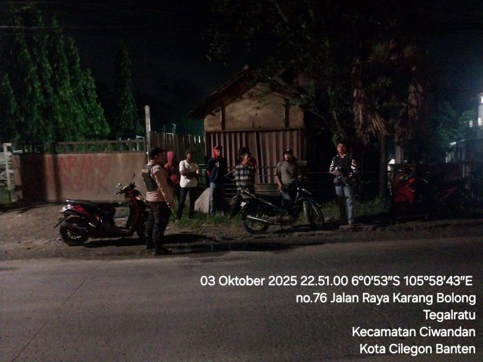 Cilegon - Personil Polsek Ciwandan Polres Cilegon Polda Banten melakukan patroli malam yang bertujuan untuk mengantisipasi adanya aktivitas balap liar dan tawuran kelompok geng motor di daerah hukum Polsek Ciwandan Polres Cilegon Polda Banten, Sabtu (04/10/2025).