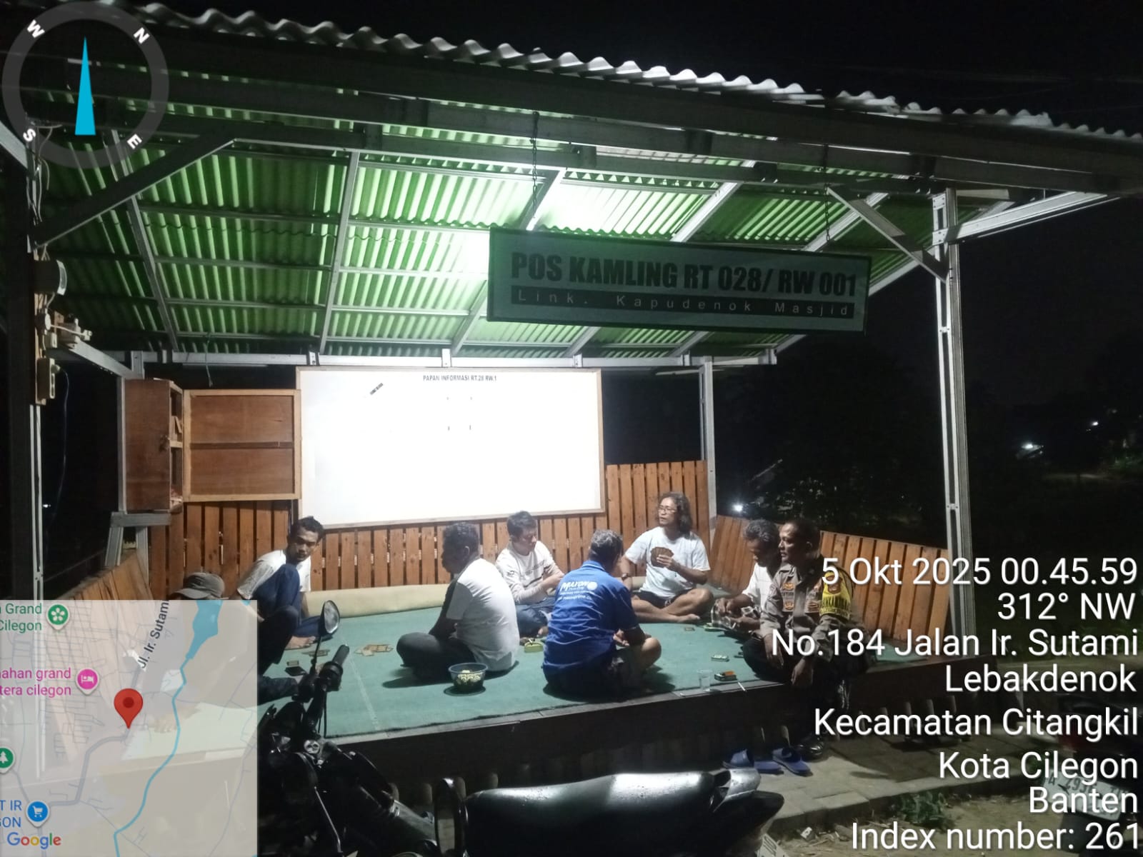 Cilegon - Guna Mencegah Terjadinya Tindak Kejahatan dan Menggiatkan Patroli Pos Ronda Siskamling di Pemukiman warga masyarakat,Personil Polsek Ciwandan Polres Cilegon Polda Banten Mengajak dan memantau pelaksanaan ronda siskamling di lingkungan daerah hukum Polsek Ciwandan, Minggu (05/10/2025).