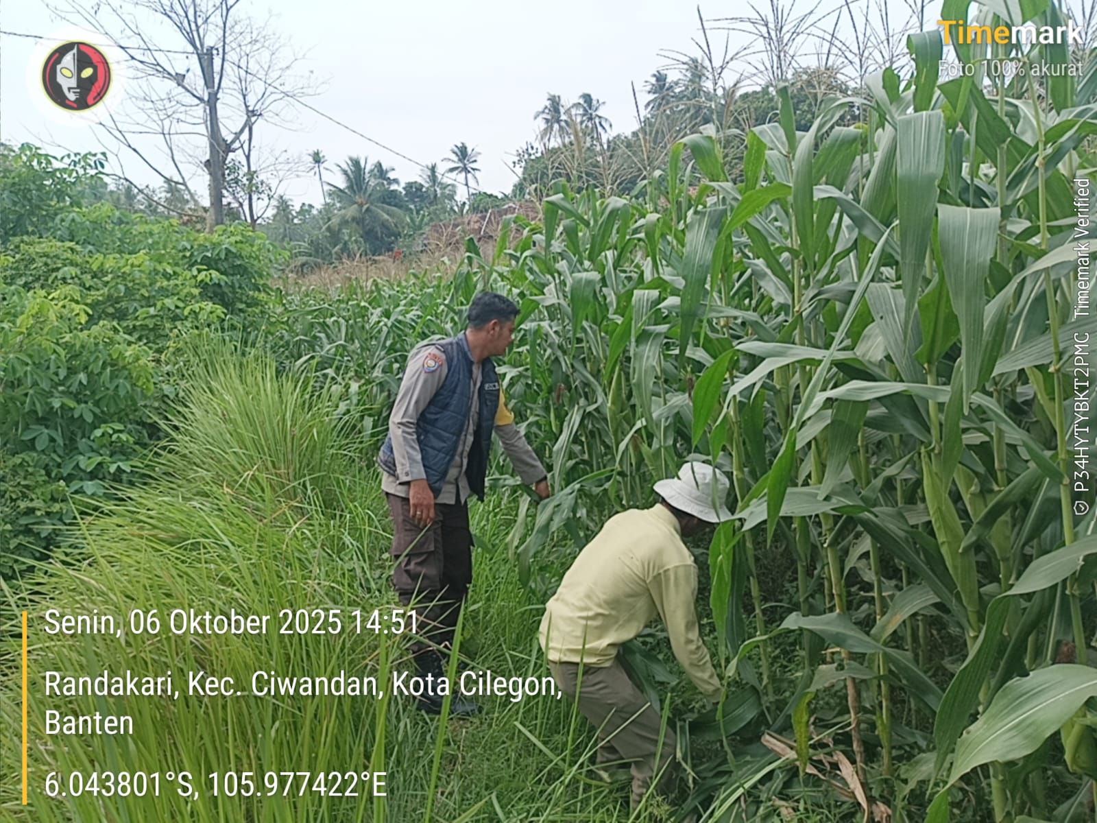 Cilegon - Dalam rangka memberikan dukungan kepada Pemerintah terkait Ketahanan pangan, Bhabinkamtibmas Ciwandan Polres Cilegon Polda Banten melaksanakan Implementasikan Program Asta Cita Presiden dengan fokus pada sektor Pertanian tanaman Jagung dilingkungan Binaan, Rabu (08/10/2025).