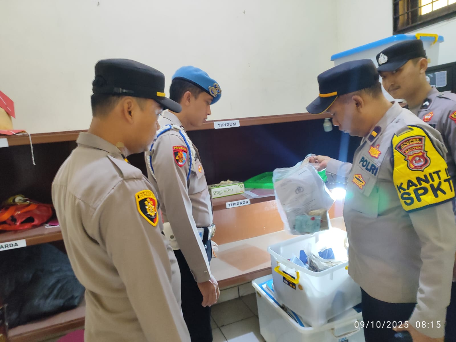 Cilegon, Polres Cilegon Polda Banten. Di gudang barang bukti Polres Cilegon. Kapolres Cilegon Polda Banten AKBP Dr.  Martua Raja Taripar Laut Silitonga,S.H,.S.I.K.,M.Si  Kepada Kasat Tahti Polres Cilegon Iptu Yudi Hartono mengingatkan agar anggota piket sattahti agar tetap terus kontrol barang bukti yang sudah dititipkan di sattahti polres cilegon.(09/10/2025)