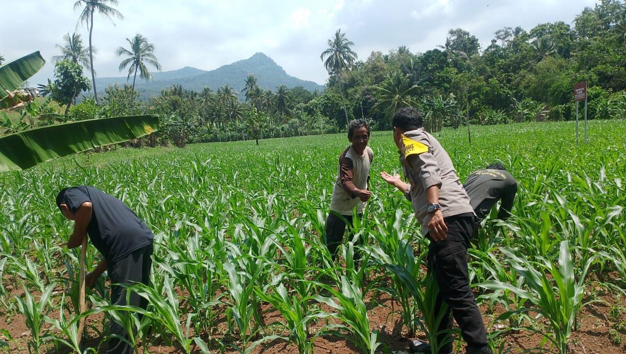 Bhabinkamtibmas Polsek Anyar Cek Lahan Jagung di Desa Binaan