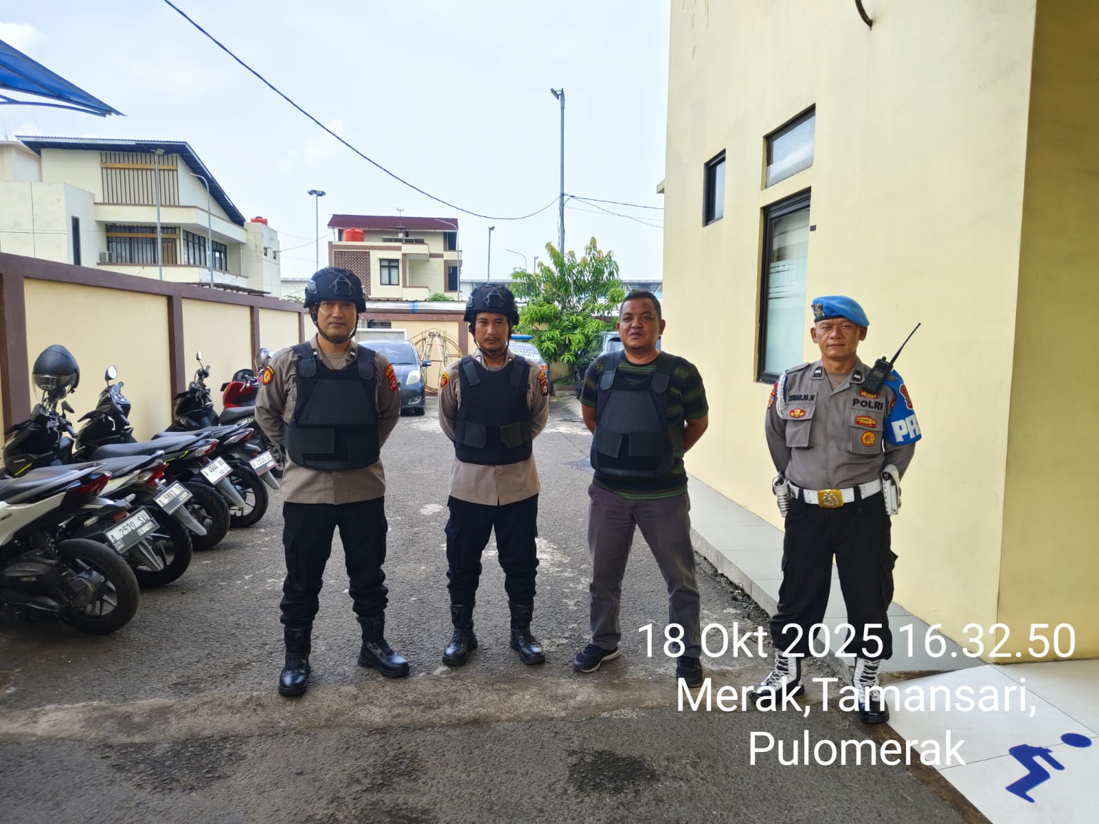 Cilegon - Personel piket jaga Polsek Kskp Merak Polres Cilgon Polda Banten melaksanakan siaga 1 Polsek pelaksanaan Sispam Mako oleh piket siaga dipimpin oleh Kspk Polsek Kskp Merak Polres Cilegon Polda Banten, Sabtu (18/10/2025).