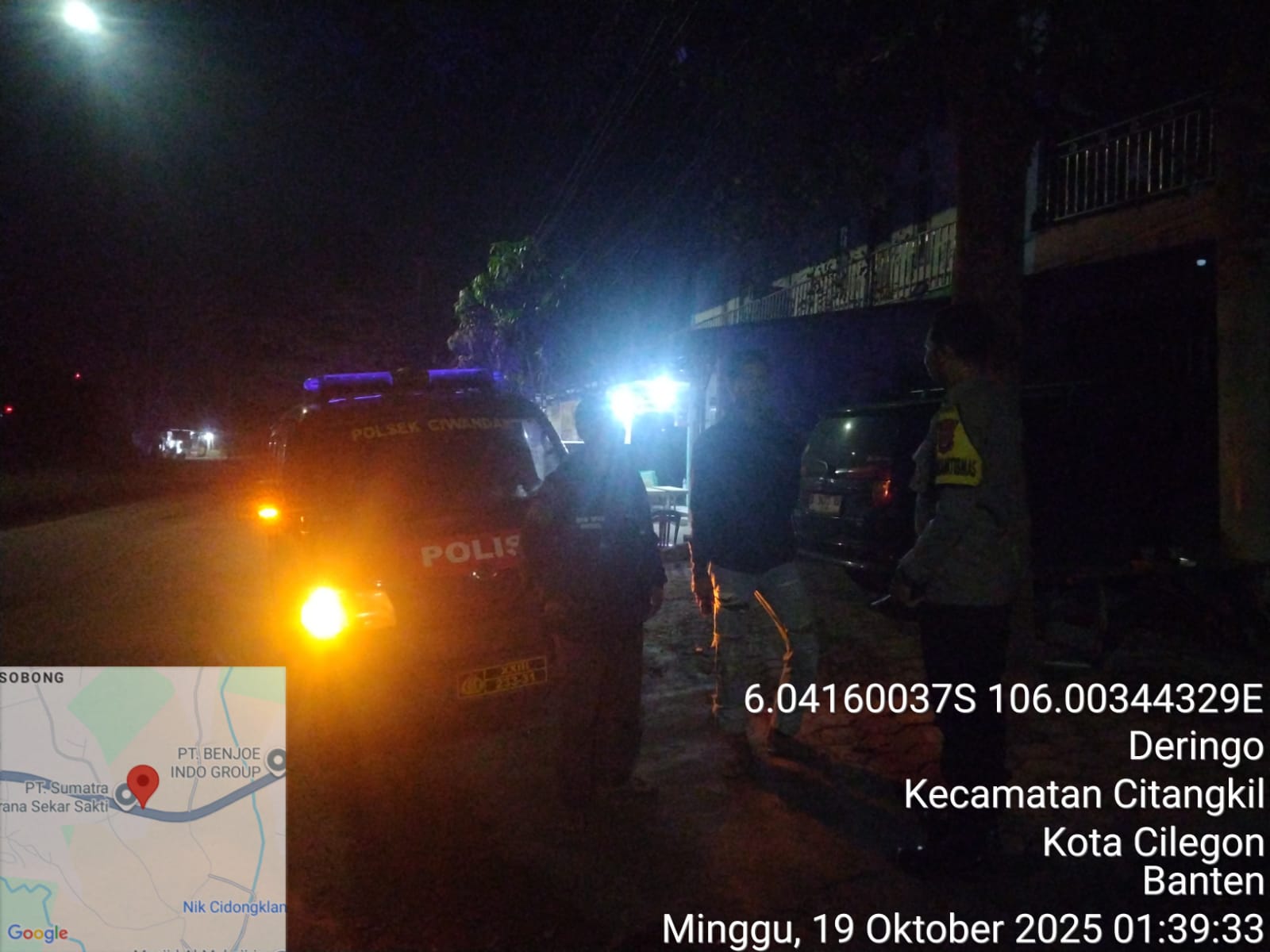 Kapolres Cilegon Polda Banten AKBP Dr. Martua Raja Taripar Laut Silitonga Melalui Kapolsek Ciwandan Polres Cilegon Polda Banten KOMPOL Andi Suherman Mengatakan bahwa setiap malam Personil Polsek Ciwandan Polres Cilegon Polda Banten menggelar patroli dengan menyasar daerah rawan dan Pada Jam Yang Dianggap Rawan, Hal tersebut dilakukan untuk mencegah terjadinya gangguan kamtibmas seperti kejahatan jalanan jambret ataupun curanmor.