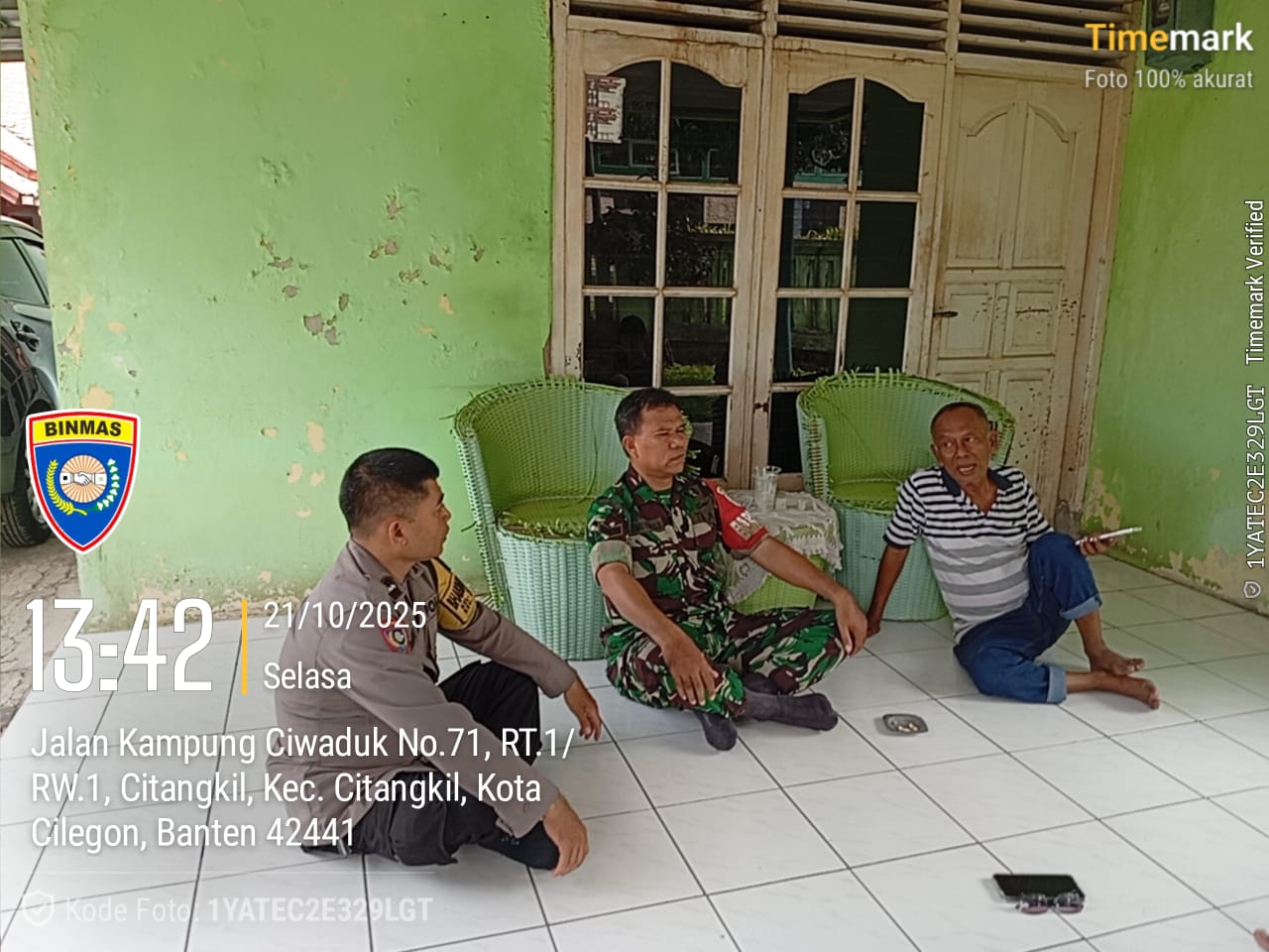 Cilegon - Demi Menjaga keamanan dan ketertiban masyarakat di daerah binaan, Bhabinkamtibmas Polsek Ciwandan Polres Cilegon Polda Banten bersama Babinsa Koramil Ciwandan Laksanakan Patroli Bersama guna membangun sinergitas, Selasa (21/10/2025).