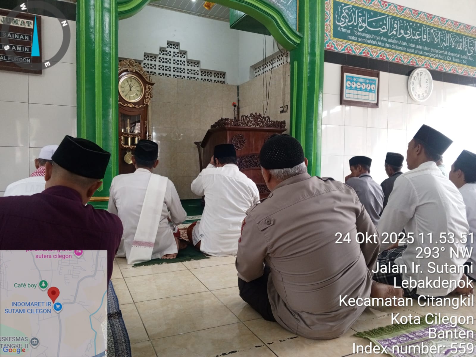 Cilegon - Dalam Rangka Implementasi Program Kapolda Banten Yaitu Sholat Jum’at Keliling Dan Berjama’ah Serta Memakmurkan Masjid, Wakapolsek Ciwandan AKP Uup M. Ma'ruf Dan Bhabinkamtibmas Polsek Ciwandan Polres Cilegon Polda Banten Sholat Berjama’ah dan Bersilaturahmi Bersama masyarakat sebagai upaya meningkatkan Ukhuwah Islamiyah dalam menjalin silaturahmi dan membangun komunikasi yang baik,Jum’at (24/10/2025).