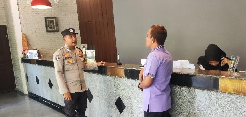 Patroli ke perhotelan Polsek Anyar memberikan himbauan kamtibmas