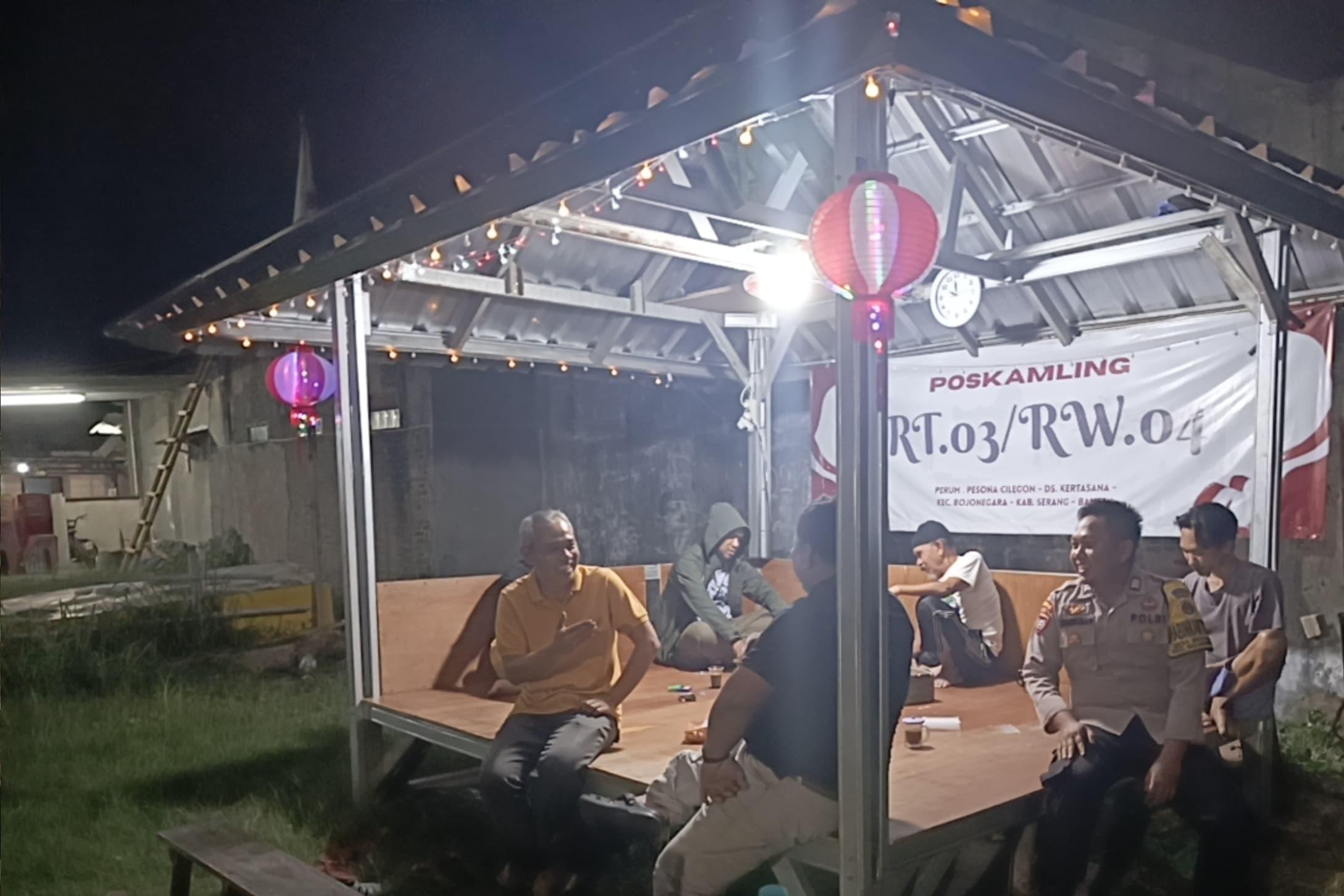 Cilegon ~ Dalam upaya menjaga situasi kamtibmas tetap kondusif,Bhabinkamtibmas Polsek Bojonegara Polres Cilegon Polda Banten, Bripka Zaenal Bersama Brigadir chairuman melaksanakan kegiatan kontrol dan pemantauan ronda malam,di sejumlah pos ronda warga yang berada di wilayah binaannya, Minggu (26/10/2025).