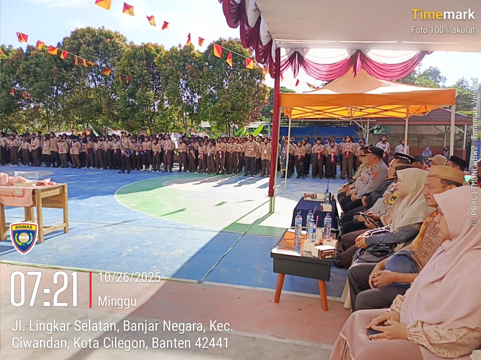 Cilegon - Kasat Binmas IPTU Muhidin dan Wakapolsek Ciwandan AKP Uup M. Ma'ruf Serta Bhabinkamtibmas Polsek Ciwandan menghadiri kegiatan pembukaan Lomba Tangkas Pramuka Se-Banten Tahun 2025 di SMA Al-Khairiyah 4 Cilegon, Minggu (26/10/2025).