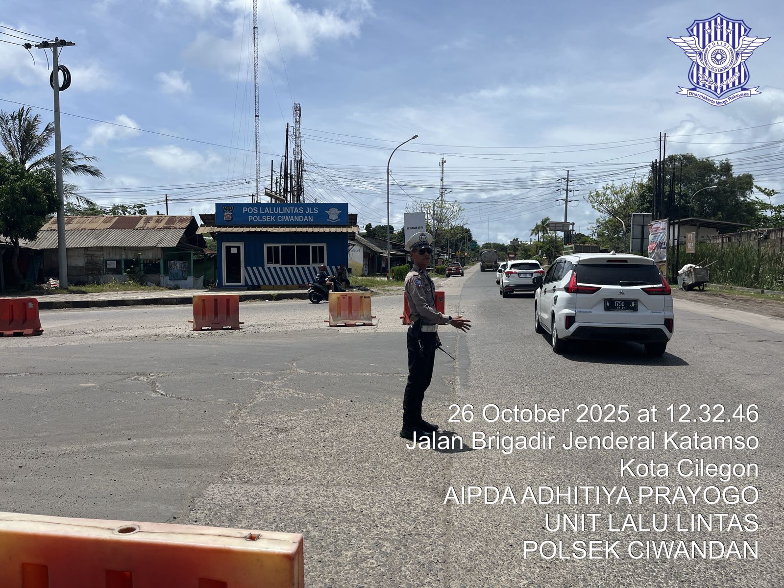Cilegon - Weekend kali ini Personil Unit Lantas Polsek Ciwandan Polres Cilegon Polda Banten melaksanakan pengaturan lalu lintas di Simpang JLS tepatnya di Pertigaan depan PT. Semen Indonesia Demi Kelancaran Arus Lalu-lintas Wisata, Minggu (26/10/2025).
