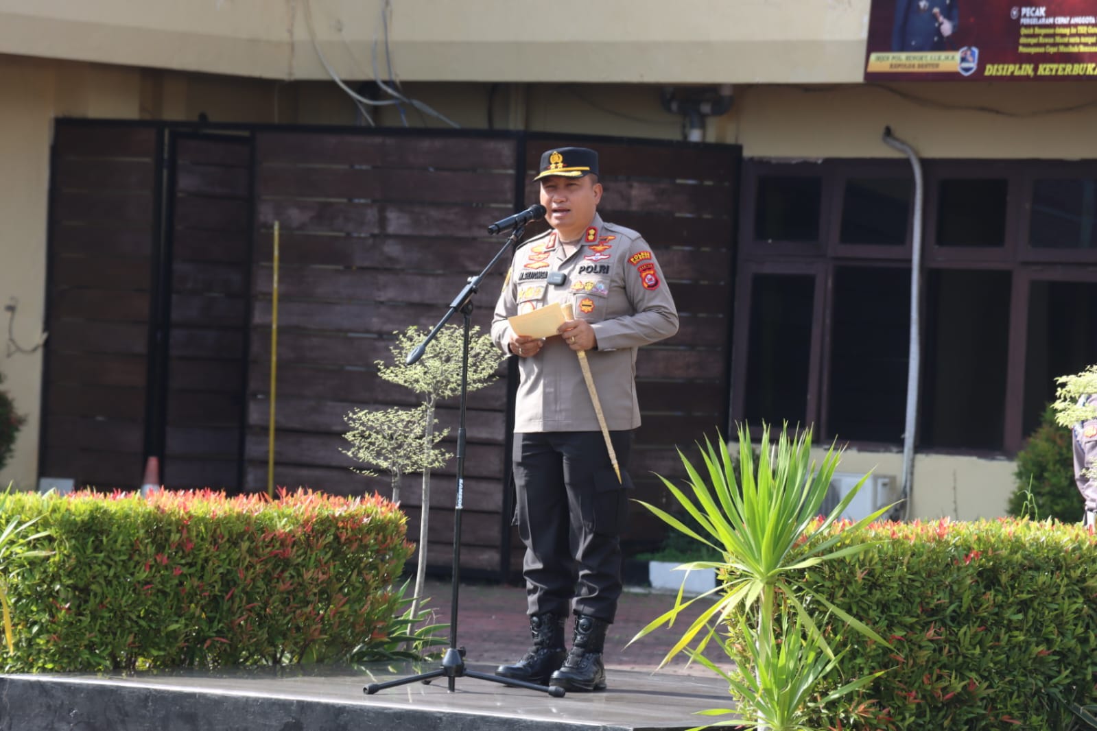 Apel yang berlangsung pukul 08.00 WIB tersebut dipimpin langsung oleh Kapolres Cilegon, AKBP Dr. Martua Raja Taripar Laut Silitonga, S.H., S.I.K., M.Si., dan diikuti oleh para Pejabat Utama Polres Cilegon, para Kapolsek jajaran, anggota Polres dan perwakilan Polsek jajaran, serta pengasuh dari SPN Polda Banten.