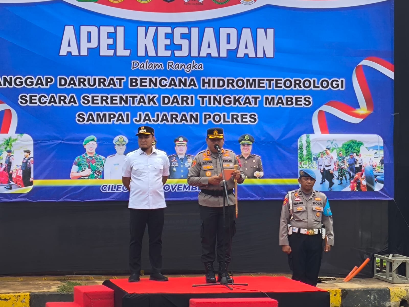 POLRES CILEGON GELAR APEL KESIAGAAN MENGHADAPI BENCANA HIDROMETEOROLOGI TAHUN 2025 BERSAMA FORKOPIMDA