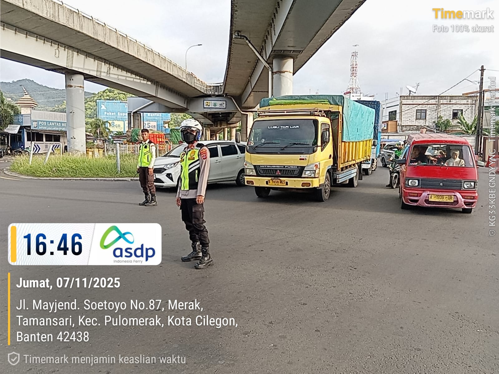 Wujud Pelayanan Prima, Personel Polsek KSKP Merak Lakukan Pengaturan Kendaraan di Pelabuhan