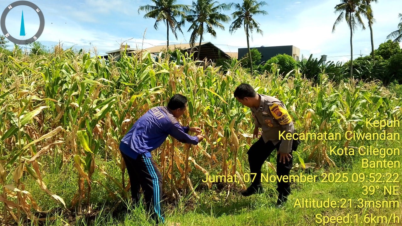 Cilegon - Dalam rangka memberikan dukungan kepada Pemerintah terkait Ketahanan pangan, Bhabinkamtibmas Ciwandan Polres Cilegon Polda Banten melaksanakan Implementasikan Program Asta Cita Presiden dengan fokus pada sektor Pertanian tanaman Jagung dilingkungan Binaan, Jum’at (07/11/2025).