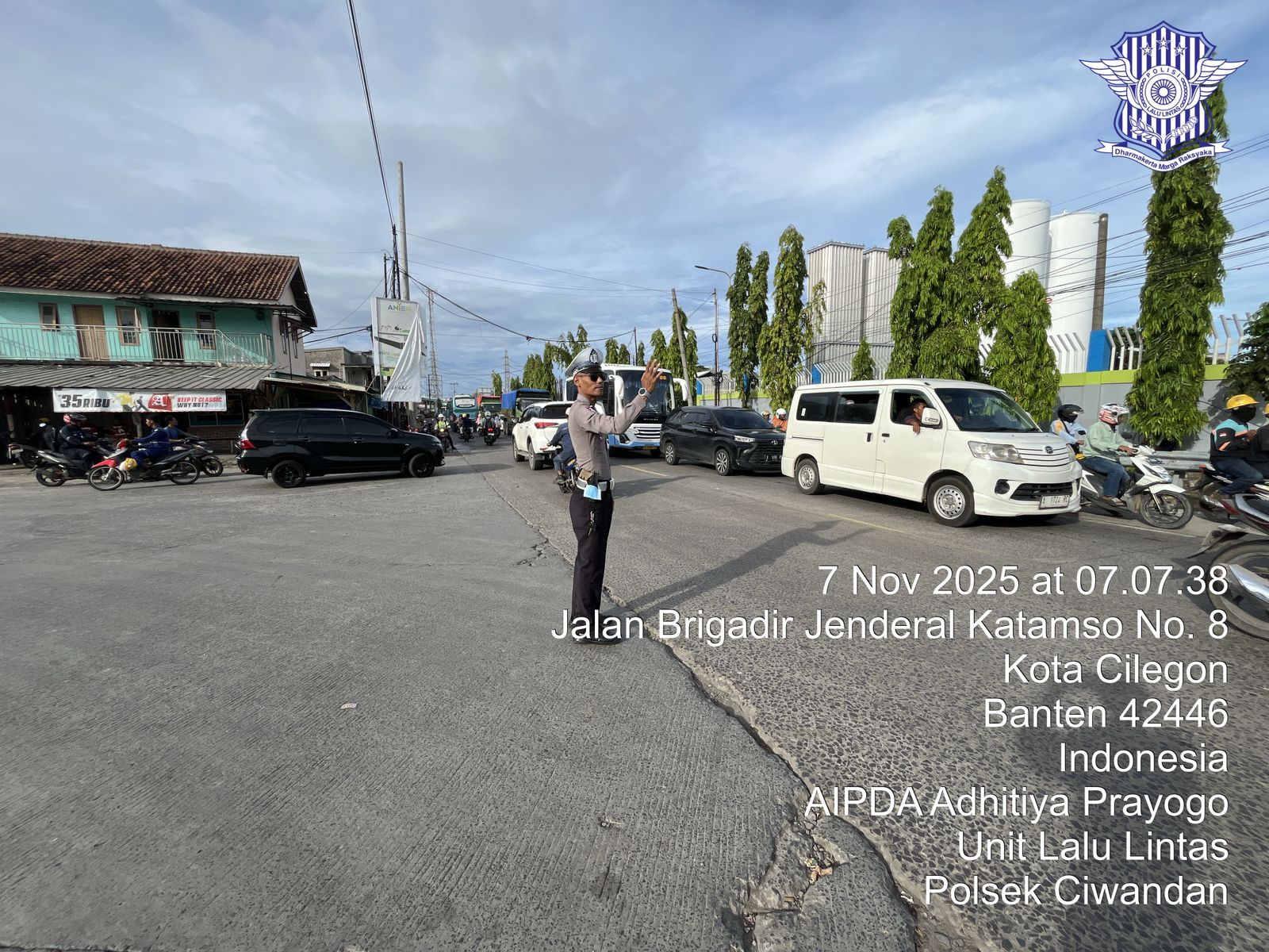 Cilegon – Berikan Pelayanan Pagi Kepada Masyarakat Personil Polsek Ciwandan Polres Cilegon Polda Banten melaksanakan pengaturan di titik kepadatan Arus Lalu-lintas Yang Ada Di daerah Hukum Polsek Ciwandan, Jum’at (07/11/2025).
