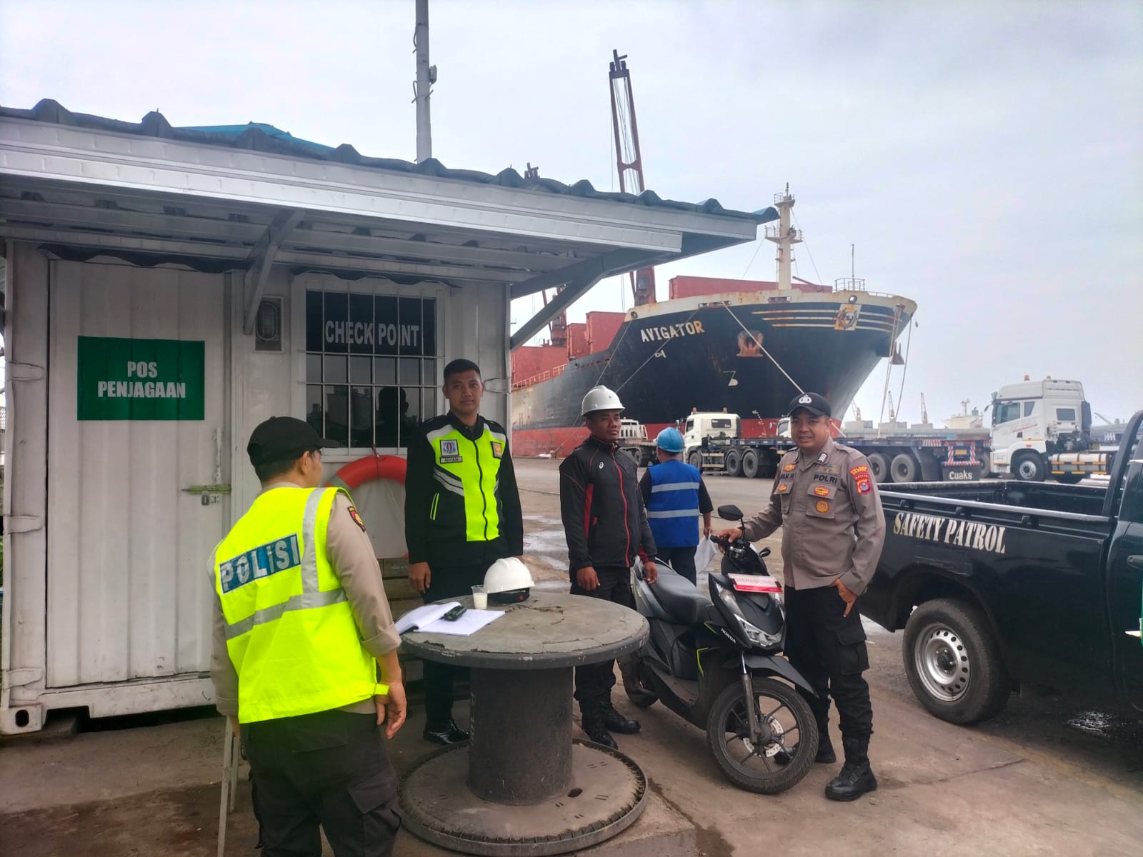 Kapolres Cilegon Polda Banten AKBP Martua Raja Taripar Laut Melalui Kapolsek Kskp Banten Polres Cilegon Polda Banten AKP Fredo Leonard Mengatakan Personil Polsek Kskp Banten Rutin menyambangi anggota Security dan memberikan himbauan agar para anggota Security bisa melaksanakan tugas menjaga keamanan di lingkungan Kawasan Pelabuhan.