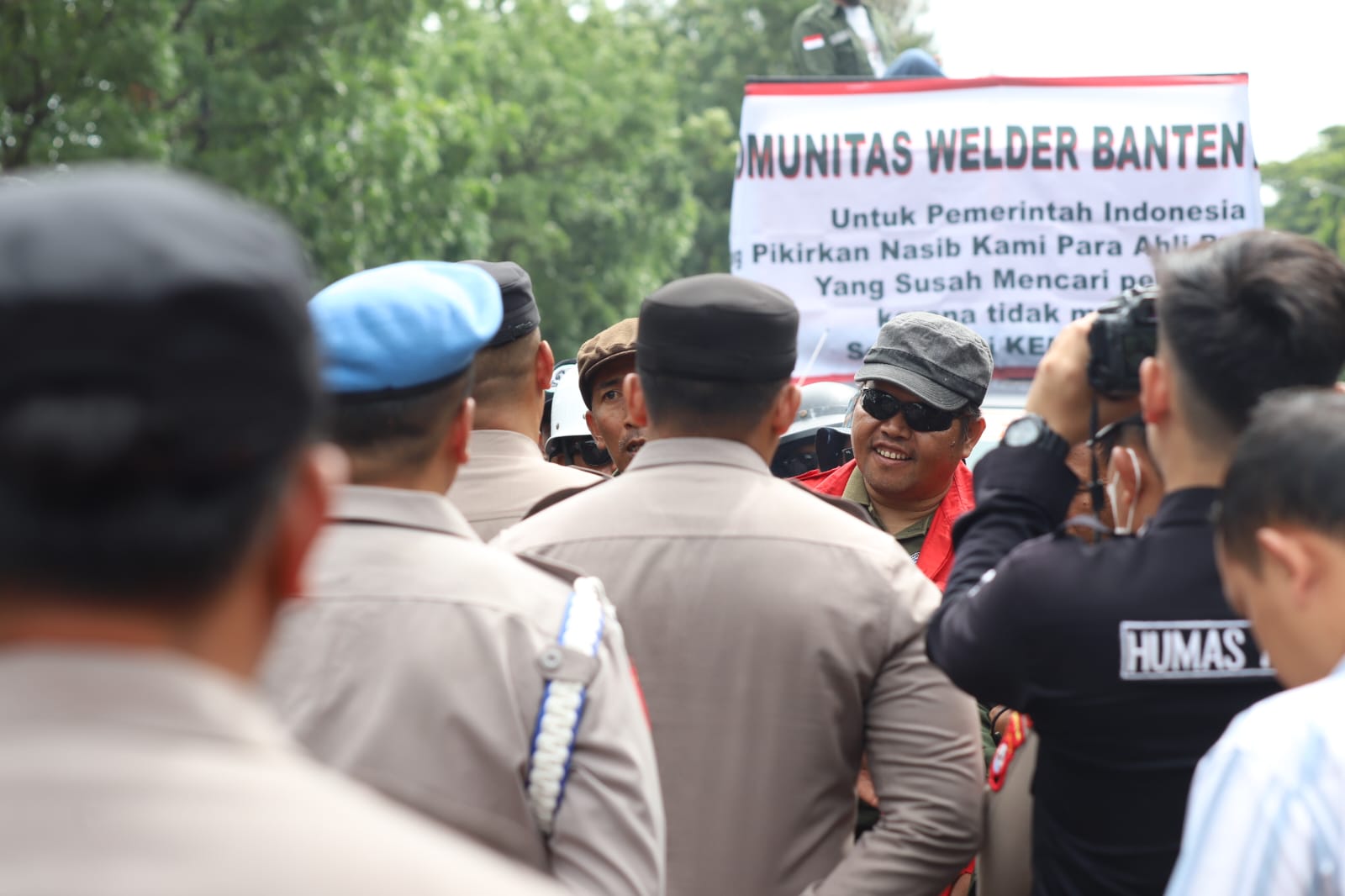 Polres Cilegon Kawal Aksi Damai Komunitas Welder Banten Bersatu di Proyek PT. CAA