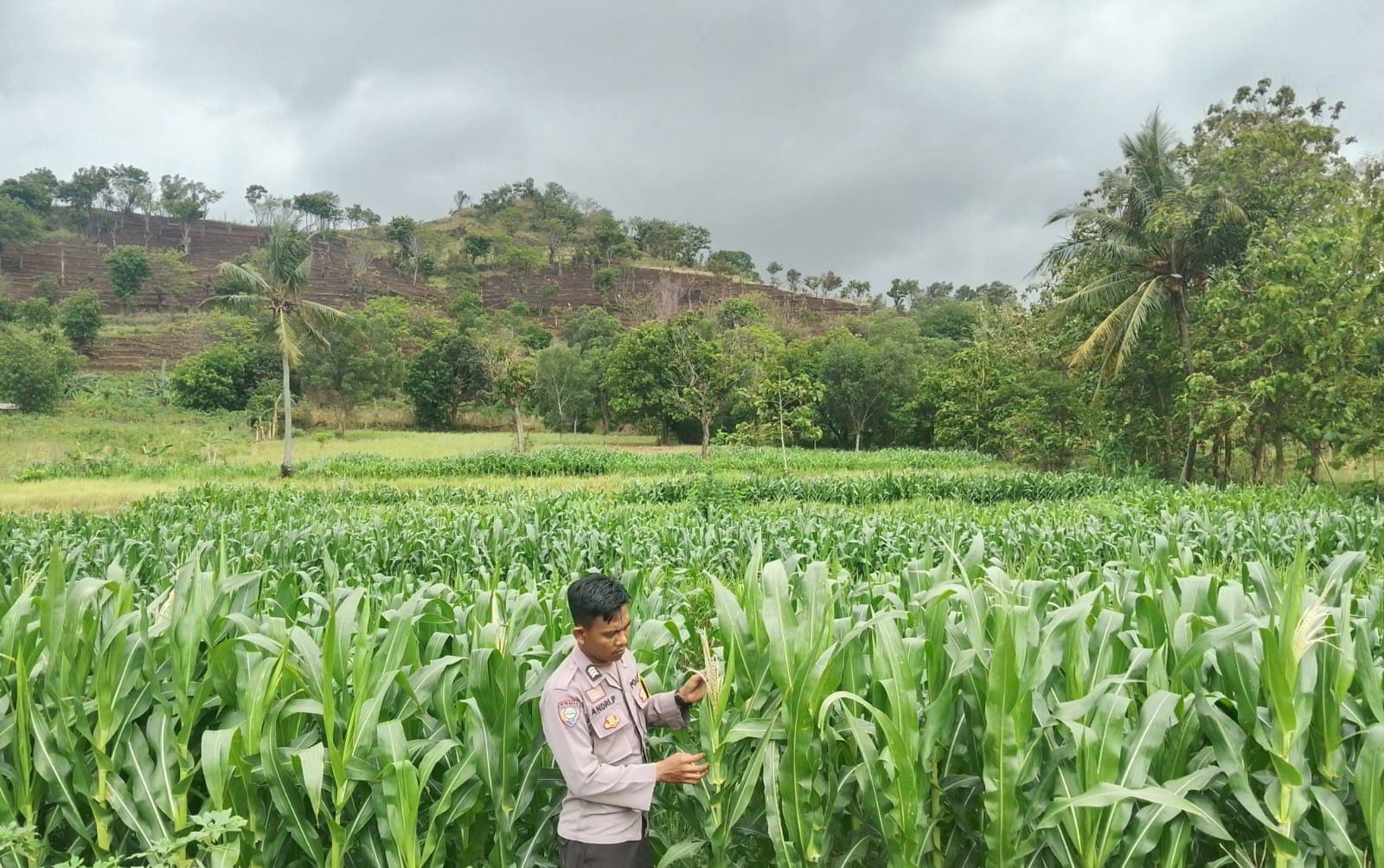 Kegiatan berlangsung lancar dan diakhiri dengan diskusi ringan antara petani dan Bhabinkamtibmas mengenai cara mengantisipasi gangguan terhadap tanaman jagung serta rencana panen ke depan.
