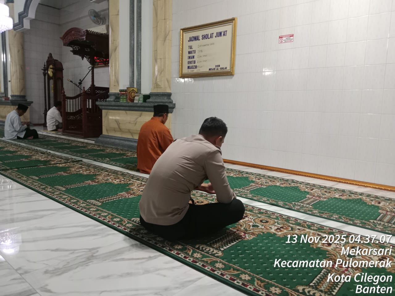 Cilegon – Personil Kskp Merak Polres Cilegon Polda Banten menggelar kegiatan Pembinaan Rohani dengan shalat subuh keliling di Masjid Yang ada Di Daerah hukum Polsek Kp Merak Polres Cilegon Polda Banten, Kamis (13/11/2025).