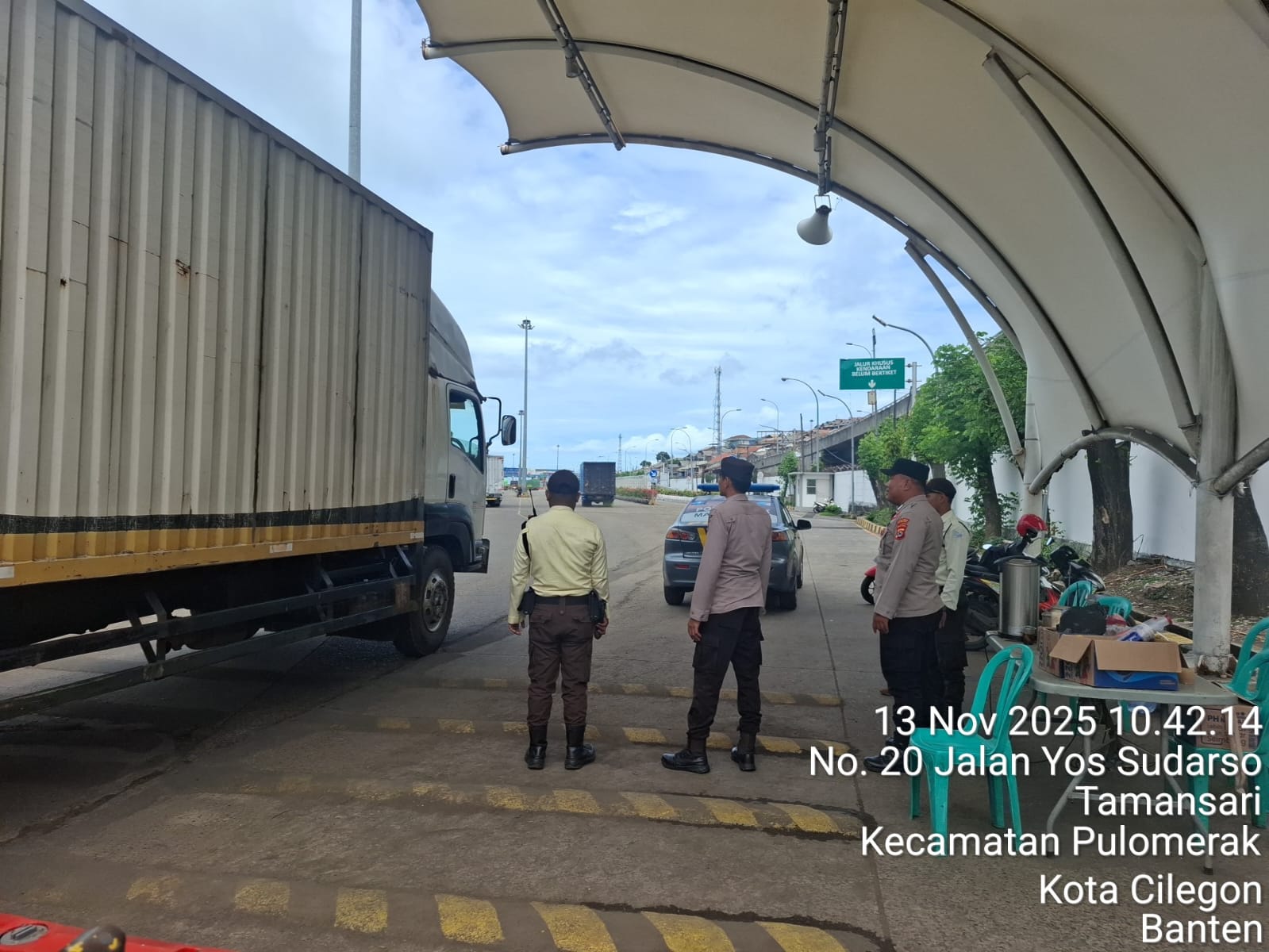 Cilegon - Personel Polsek Kskp Merak Polres Cilegon Polda Banten melaksanakan sambang dan patroli kawasan pelabuhan merak dalam rangka menjaga Harkamtibmas di Kawasan Pelabuhan Merak, Kamis (13/11/2025).