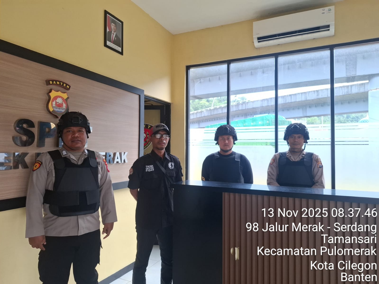 Cilegon - Personel piket jaga Polsek Kskp Merak Polres Cilgon Polda Banten melaksanakan siaga 1 Polsek pelaksanaan Sispam Mako oleh piket siaga dipimpin oleh Kspk Polsek Kskpy Merak Polres Cilegon Polda Banten, Kamis (13/11/2025).