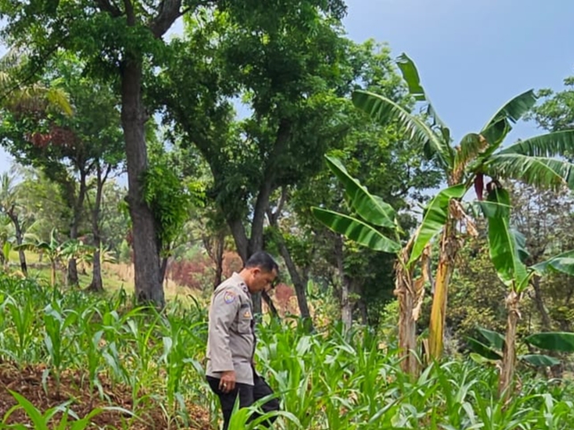 Cek pertumbuhan jagung. Bhabinkamtibmas Lebakgede gandeng poktan Florida Jaya