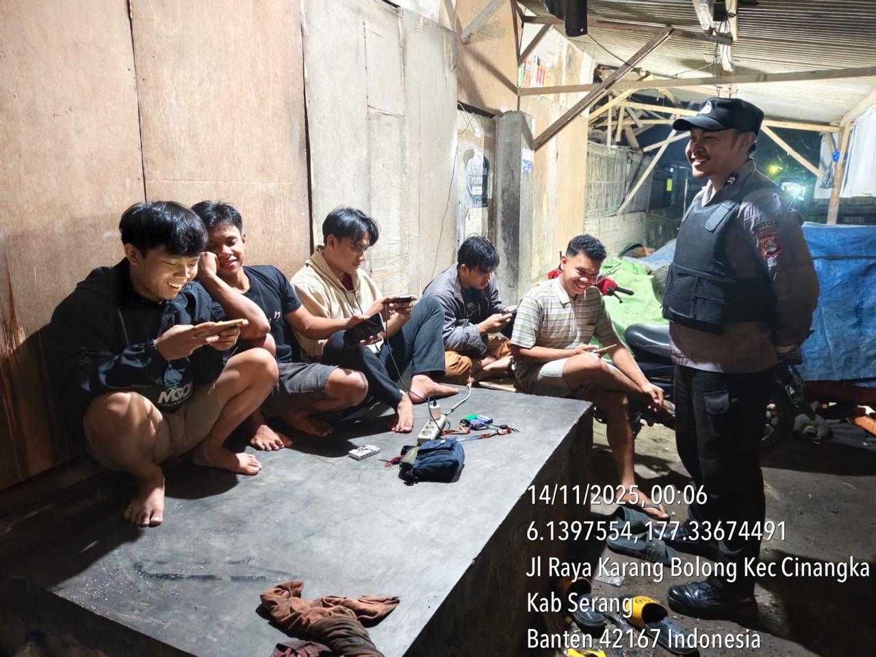 *Cilegon* – Dalam Rangka Pencegahan Kejahatan Jalanan dan Memelihara situasi keamanan dan menjaga serta memberikan rasa aman dan nyaman di masyarakat,Salah satu upaya untuk mewujudkan hal tersebut sebagaimana yang dilakukan oleh Personil Polsek Cinangka Polres Cilegon Polda Banten melaksanakan giat patroli blue light malam hari hingga menjelang pagi, Jumat (14/11/2025).