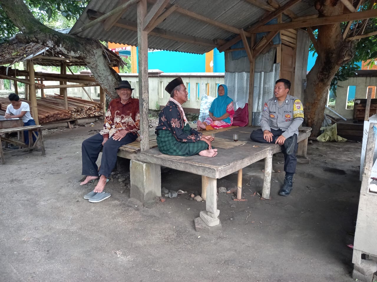 Bhabinkamtibmas Bripka Agustoni melaksanakan sambang ke toko-toko masyarakat di lingkungan Leungsawo, Kelurahan Kotabumi, Kecamatan Purwakarta, Kota Cilegon