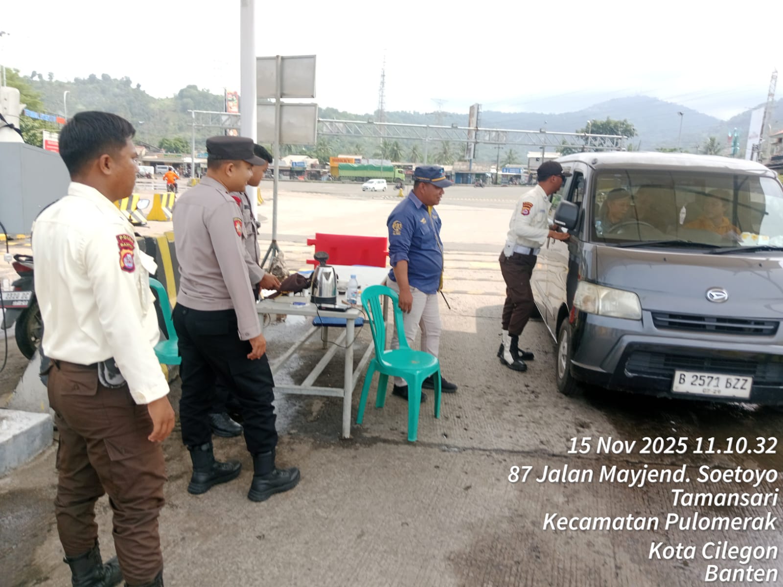 Cilegon - Personel Polsek Kskp Merak Polres Cilegon Polda Banten melaksanakan sambang dan patroli kawasan pelabuhan merak dalam rangka menjaga Harkamtibmas di Kawasan Pelabuhan Merak, Sabtu (15/11/2025).