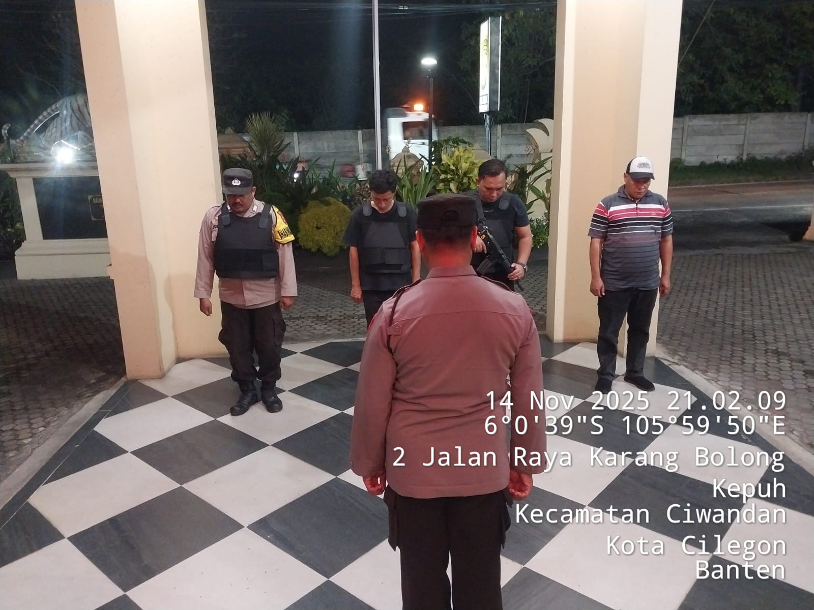 Cilegon - Personil Polsek Ciwandan Polres Cilegon Polda Banten menggelar apel malam Persiapan Patroli yang dipimpin Oleh Pawas Kanit Samapta Polsek Ciwandan AKP Sarpan, Minggu (16/11/2025).