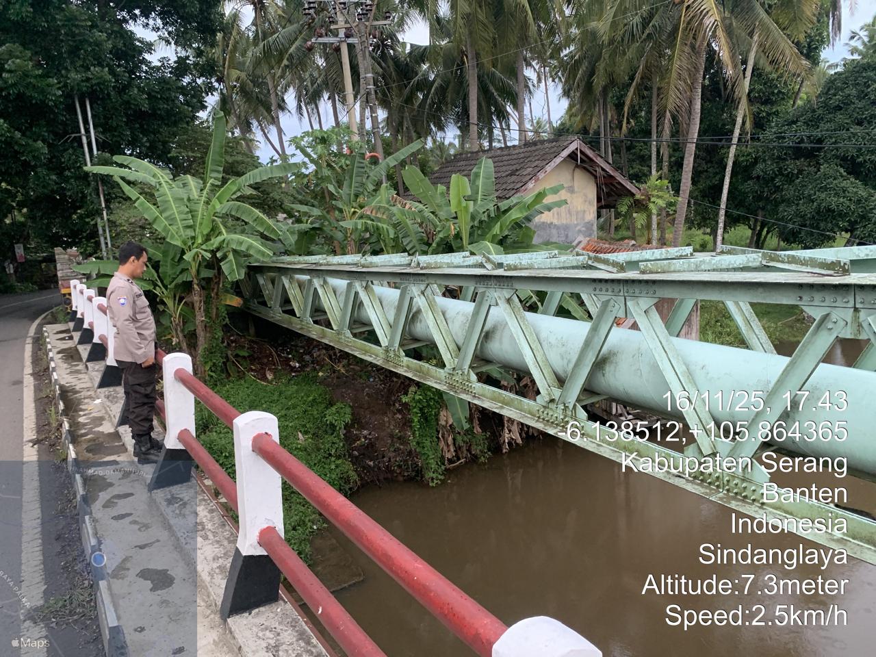 Piket Polsek Cinangka secara rutin melakukan pengecekan kondisi sungai dan berkoordinasi dengan pihak terkait untuk memantau perkembangan debit air. Pemantauan ini juga melibatkan partisipasi aktif dari masyarakat setempat.