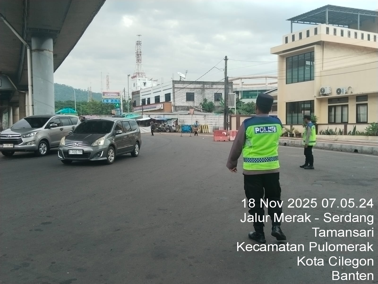 Personel Polsek KSKP Merak Lakukan Pengaturan Antrian Kendaraan di Pelabuhan Merak