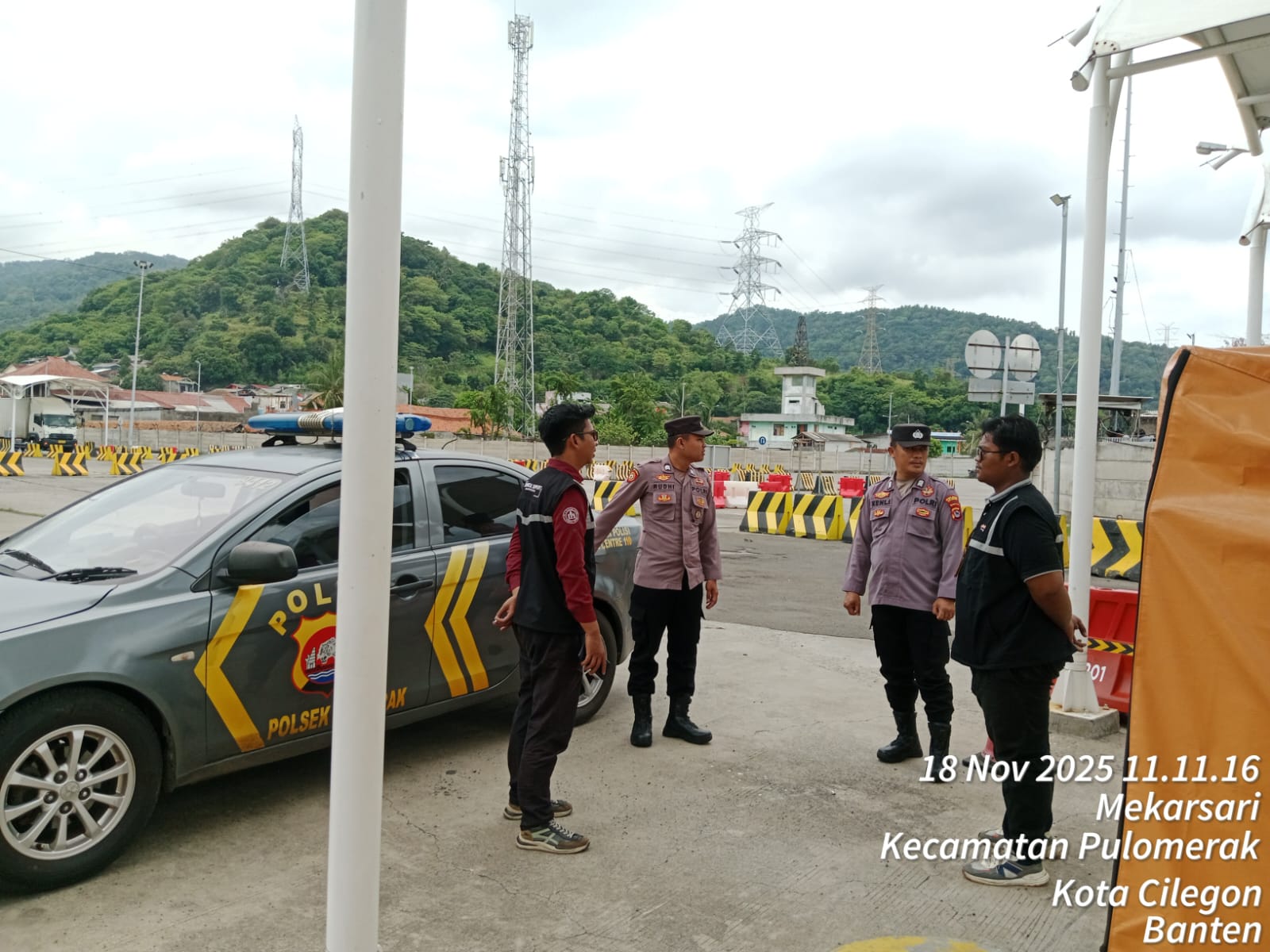 Cilegon - Personel Polsek Kskp Merak Polres Cilegon Polda Banten melaksanakan sambang dan patroli kawasan pelabuhan merak dalam rangka menjaga Harkamtibmas di Kawasan Pelabuhan Merak, Selasa (18/11/2025).