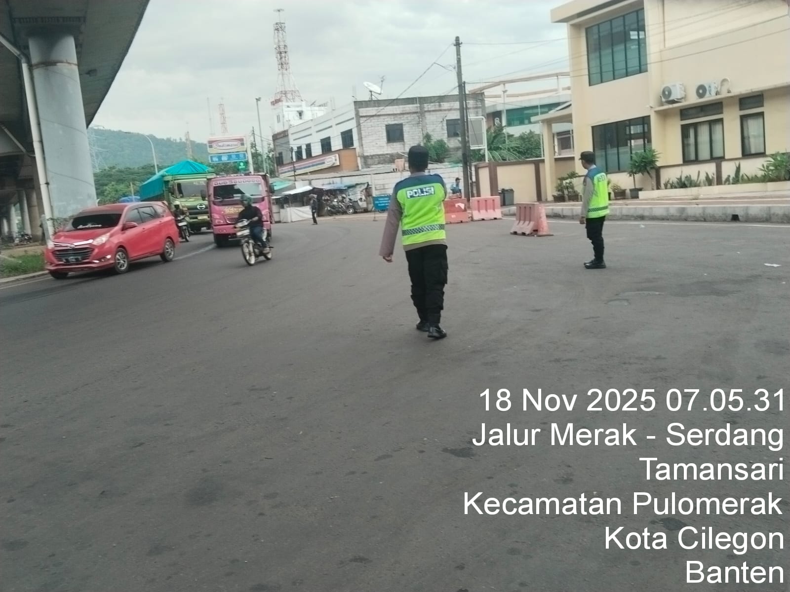 Tingkatkan Kenyamanan, Polsek KSKP Merak Terjunkan Personel Atur Arus Penyeberangan