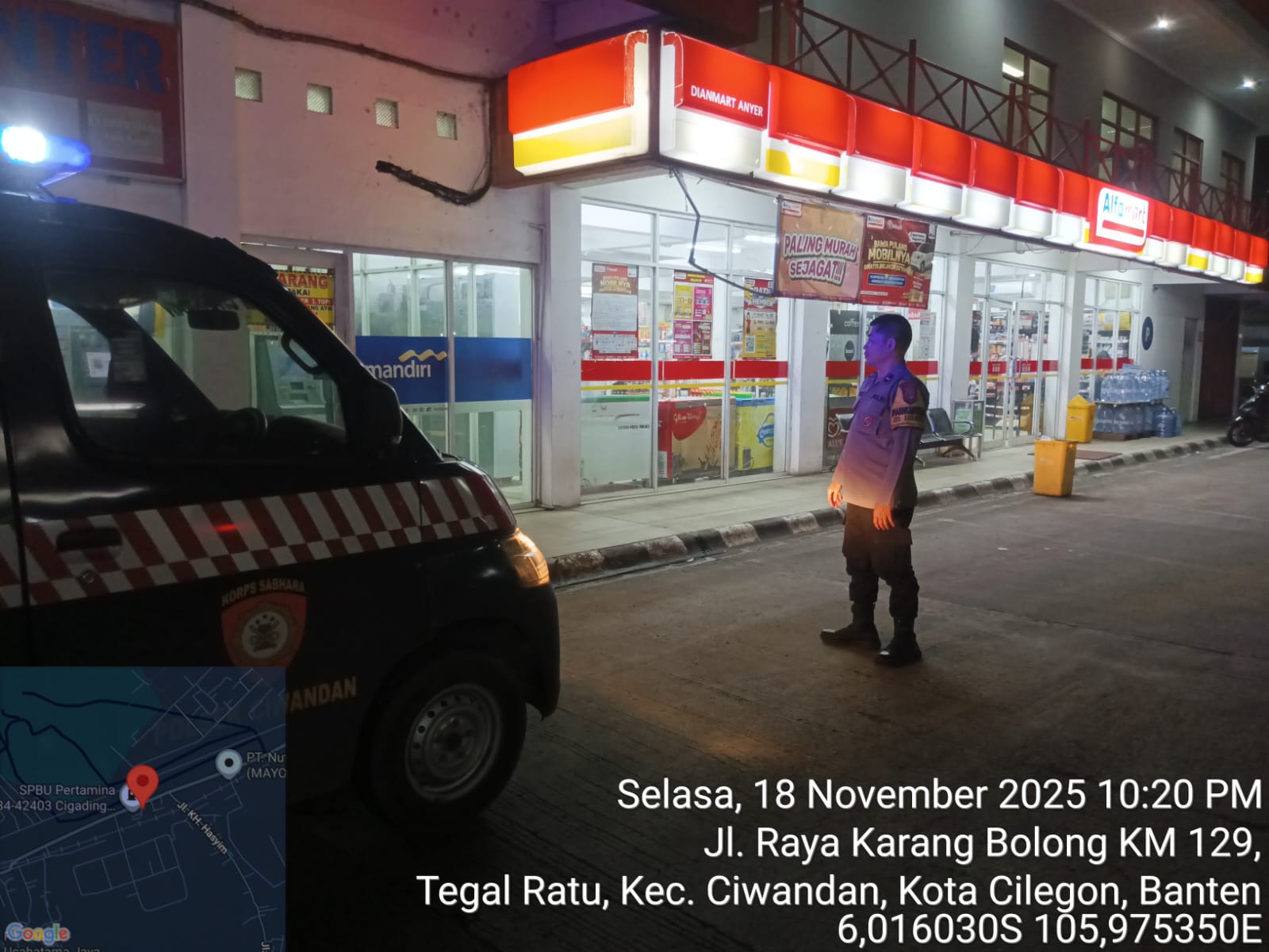 Cilegon - Personil Polsek Ciwandan Ciptakan situasi keamanan dan ketertiban di masyarakat (Kamtibmas) yang aman kondusif Dengan Melaksanakan kegiatan patroli malam guna mencegah gangguan kamtibmas dan kejahatan jalanan, Rabu (19/11/2025).