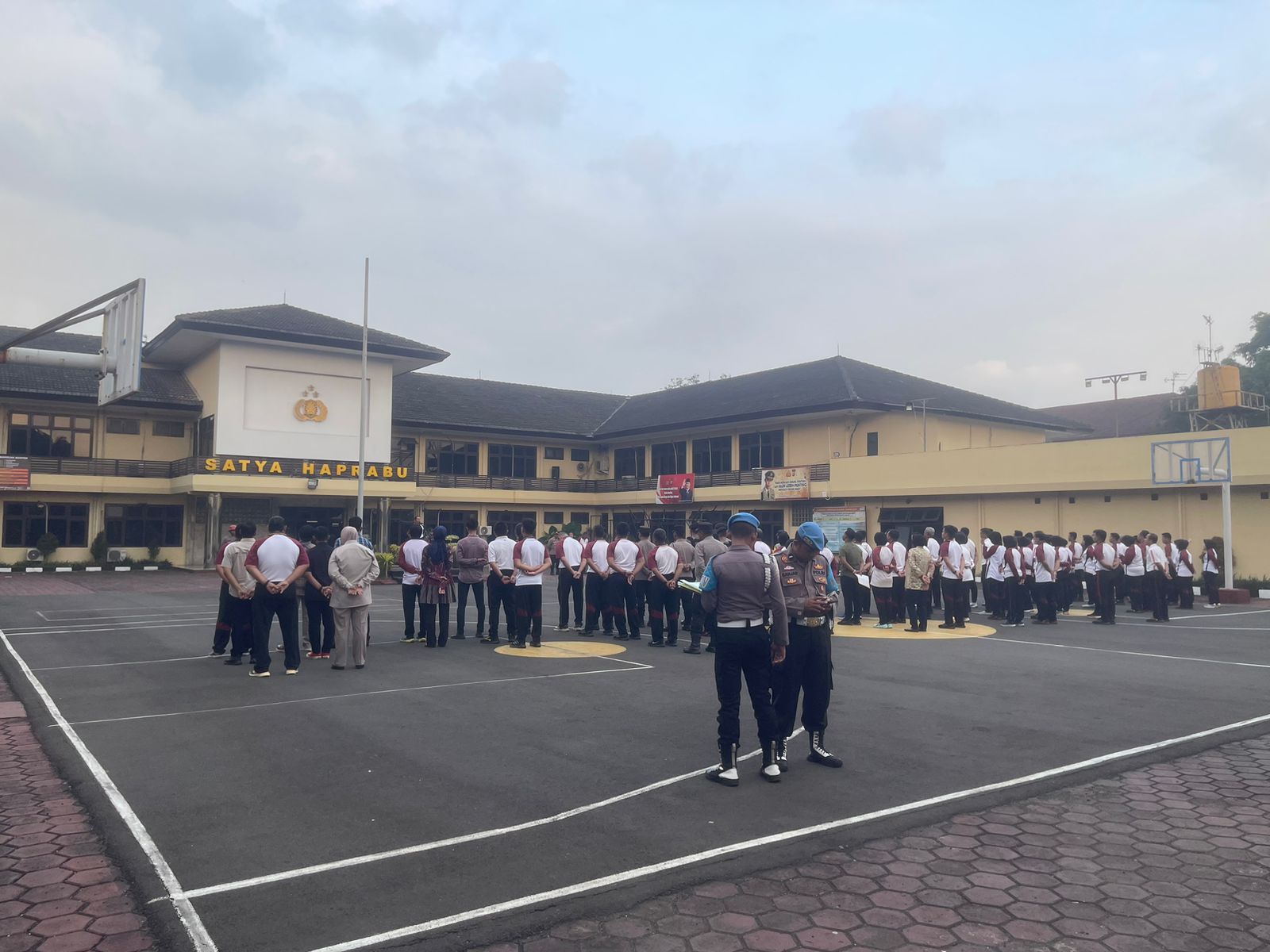 Polres Cilegon Polda Banten melaksanakan apel pagi merupakan bagian dari cara penyampaian informasi atau rencana kegiatan serta analisa dan evaluasi dalam pelaksanaan tugas di lapangan di Lapangan mako polres Cilegon, Jumat(04/04/2024)