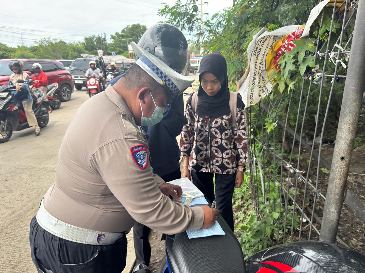 Petugas juga melakukan edukasi dan imbauan keselamatan secara humanis kepada para pengguna jalan. Sejumlah pengendara yang masih kedapatan melanggar diberikan teguran maupun penindakan sesuai aturan yang berlaku.