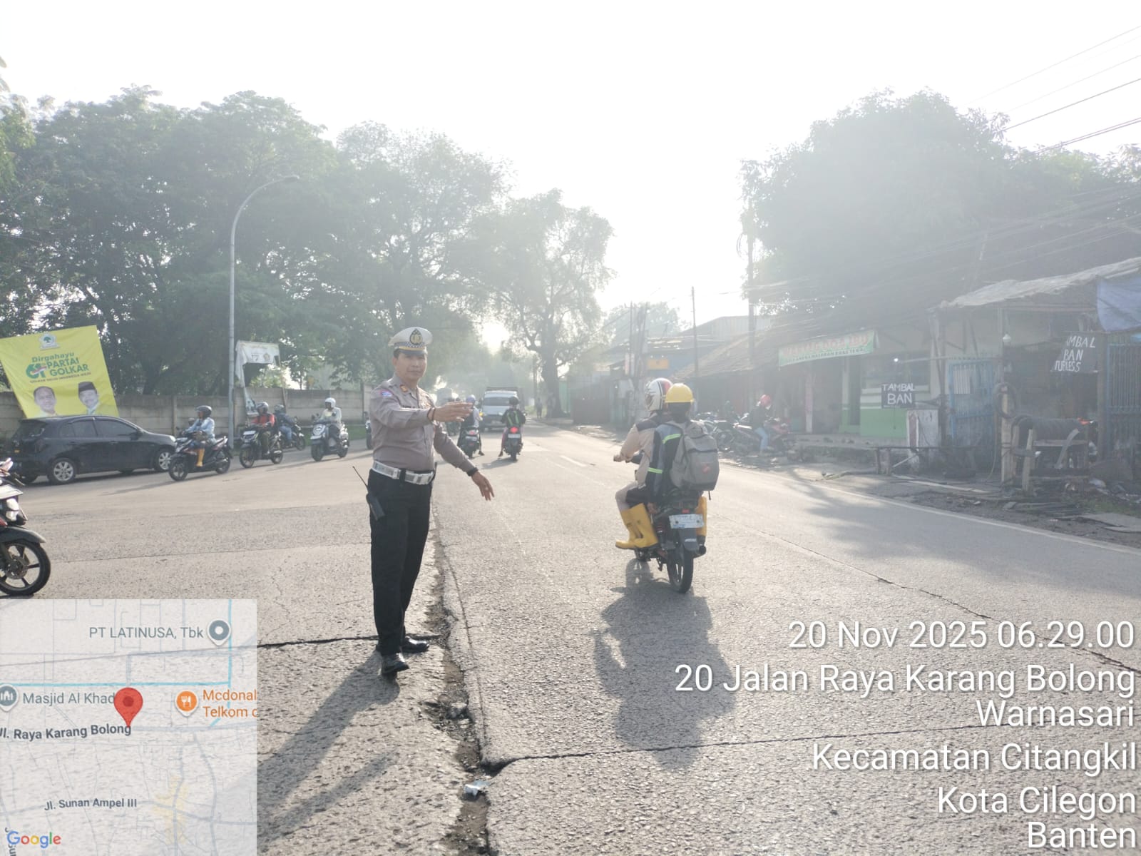Cilegon - Dalam Mewujudkan Aksi Nyata Pelayanan Kepada Masyarakat,Personil Polsek Ciwandan Polres Cilegon Polda Banten Laksanakan Strong Poin Pengaturan Lalu-lintas, Kamis (20/11/2025).