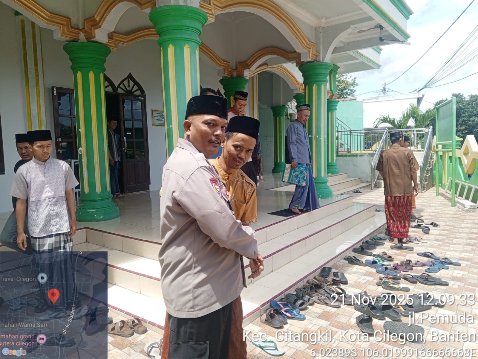 Cilegon - Bhabinkamtibmas Polsek Ciwandan Polres Cilegon Polda Banten Selesai melaksanakan Sholat secara berjama’ah dan Sampaikan Himbauan-himbauan Kamtibmas Kepada Masyarakat Jama'ah Yang ada Dimasjid, Jum'at (21/11/2025).