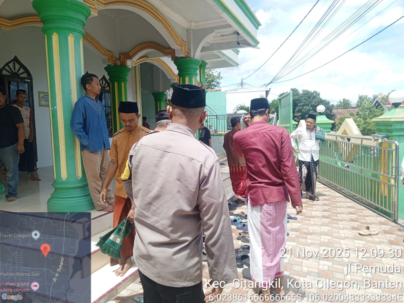 Cilegon - Bhabinkamtibmas Polsek Ciwandan Polres Cilegon Polda Banten Selesai melaksanakan Sholat secara berjama’ah dan Sampaikan Himbauan-himbauan Kamtibmas Kepada Masyarakat Jama'ah Yang ada Dimasjid, Jum'at (21/11/2025).