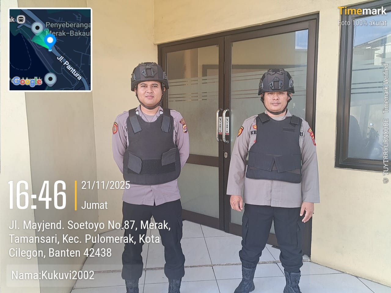 Cilegon - Personel piket jaga Polsek Kskp Merak Polres Cilgon Polda Banten melaksanakan siaga 1 Polsek pelaksanaan Sispam Mako oleh piket siaga dipimpin oleh Kspk Polsek Kskpy Merak Polres Cilegon Polda Banten, Jumat (21/11/2025).