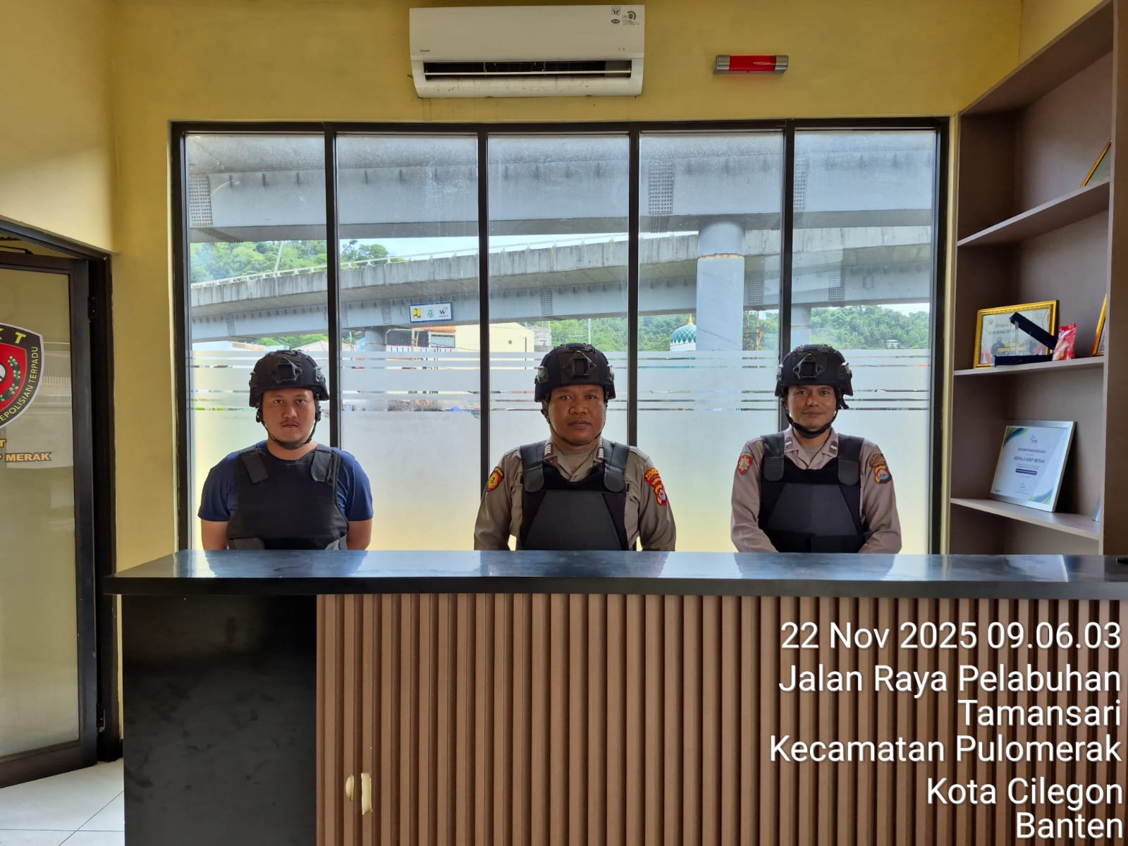 Cilegon - Personel piket jaga Polsek Kskp Merak Polres Cilgon Polda Banten melaksanakan siaga 1 Polsek pelaksanaan Sispam Mako oleh piket siaga dipimpin oleh Kspk Polsek Kskpy Merak Polres Cilegon Polda Banten, Sabtu (22/11/2025).