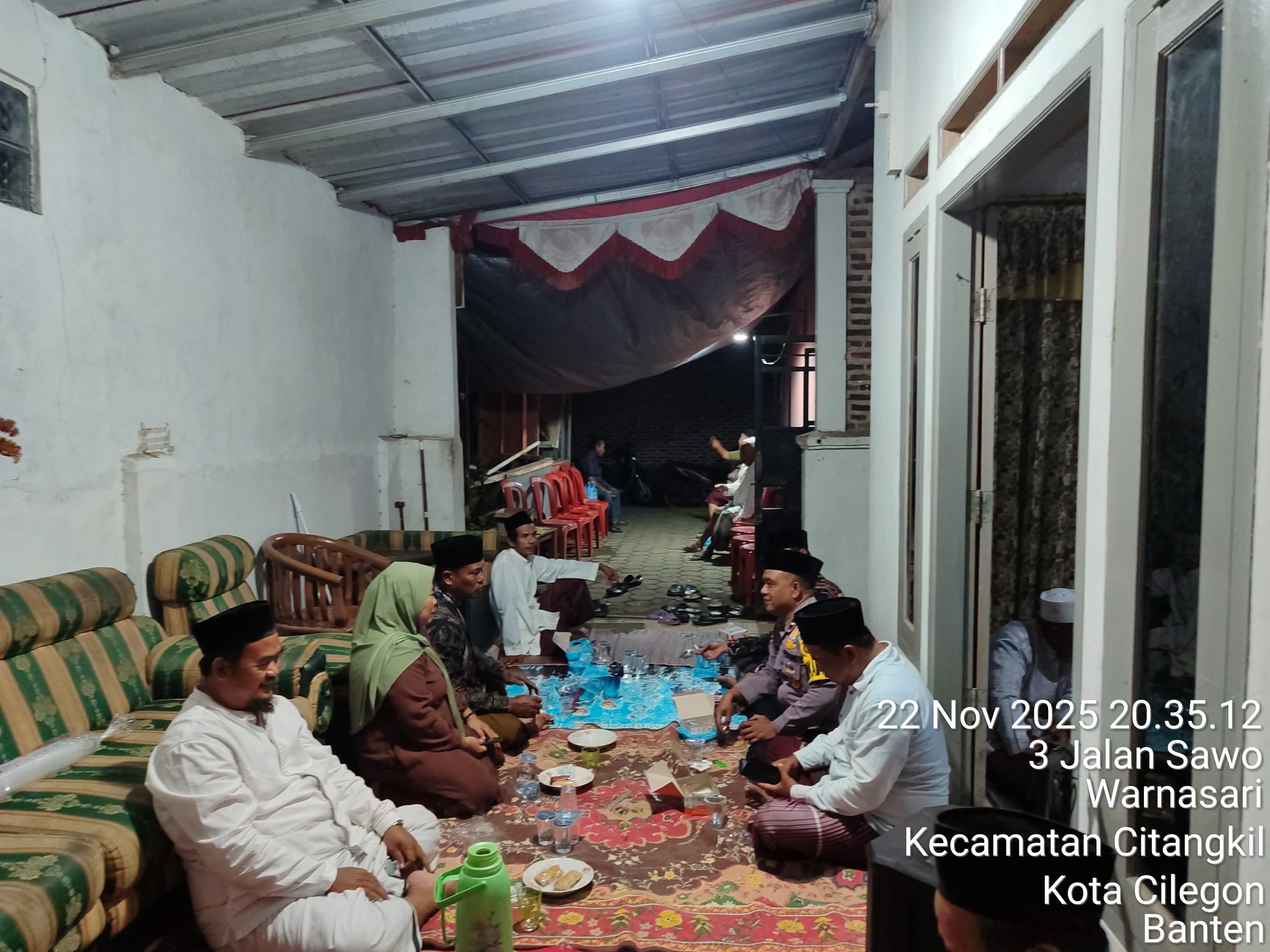 Cilegon - Salah Satu Wujud Empati Kepedulian Dari Bhabinkamtibmas Kepada warga Masyarakat di daerah binaanya, Bhabinkamtibmas Kelurahan Warnasari Polsek Ciwandan Polres Cilegon Polda Banten AIPDA M. Enday melaksanakan takziah ke salah satu warga yang meninggal dunia, Sabtu (22/11/2025).