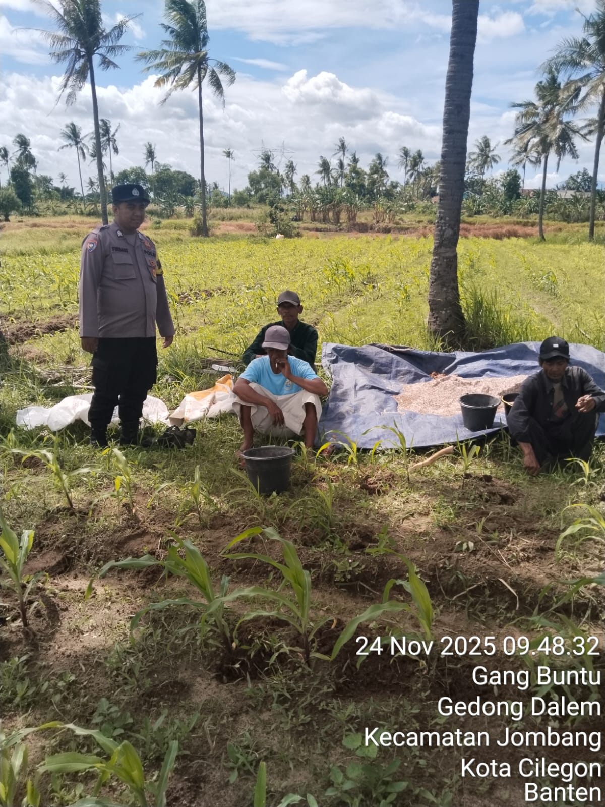 Cilegon - Melaksanakan program pemerintah, penanaman jagung dalam program ketahanan pangan, personil Polsek Kp Merak Polres Cilegon Polda Banten melaksanakan kegiatan peninjauan serta monitoring lokasi yang nantinya akan ditanami bibit jagung unggul di Desa Mangkunegara Kecamatan Bojonegara, Kabupaten Serang, Senin (24/11/2025).