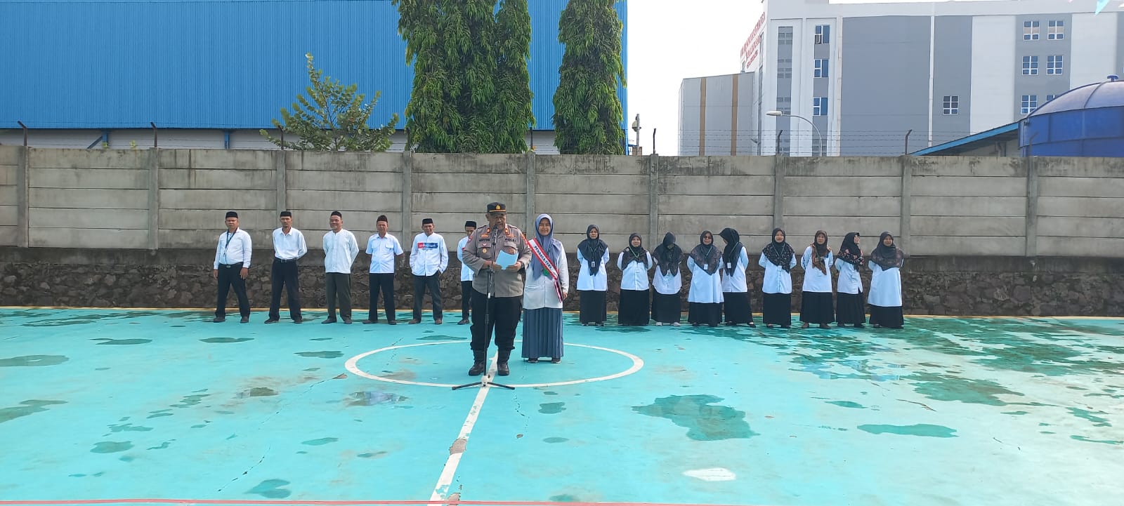 Cilegon – Bhabinkamtibmas Polsek Ciwandan Dampingi Kasat Binmas Polres Cilegon Polda Banten IPTU Muhyidin Pimpin Upacara Dan Menyambangi MTS & MA Dikelurahan Tegalratu Kecamatan Ciwandan, Menyampaikan Pesan-pesan Kamtibmas Dan Memberikan Imbauan, Senin (24/11/2025).