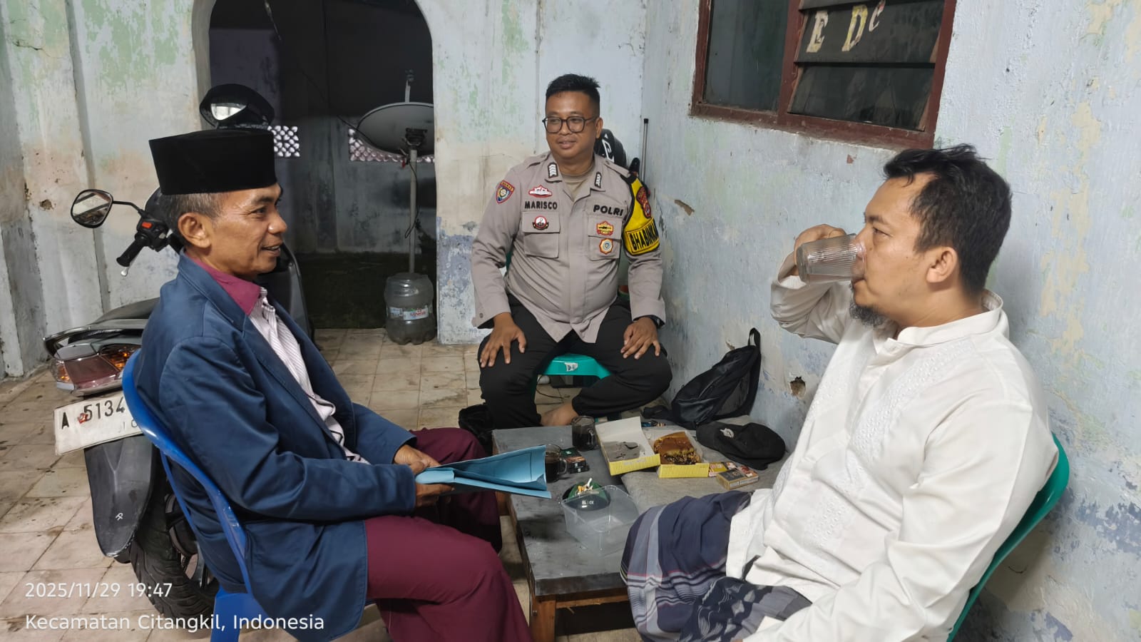 Cilegon - Upaya mengantisipasi aksi kejahatan pada daerah binaan dan memberikan rasa aman dan nyaman kepada warga binaan, Bhabinkamtibmas Polsek Ciwandan Polres Cilegon Polda Banten sambangi warga pada malam hari, Sabtu (29/11/2025).