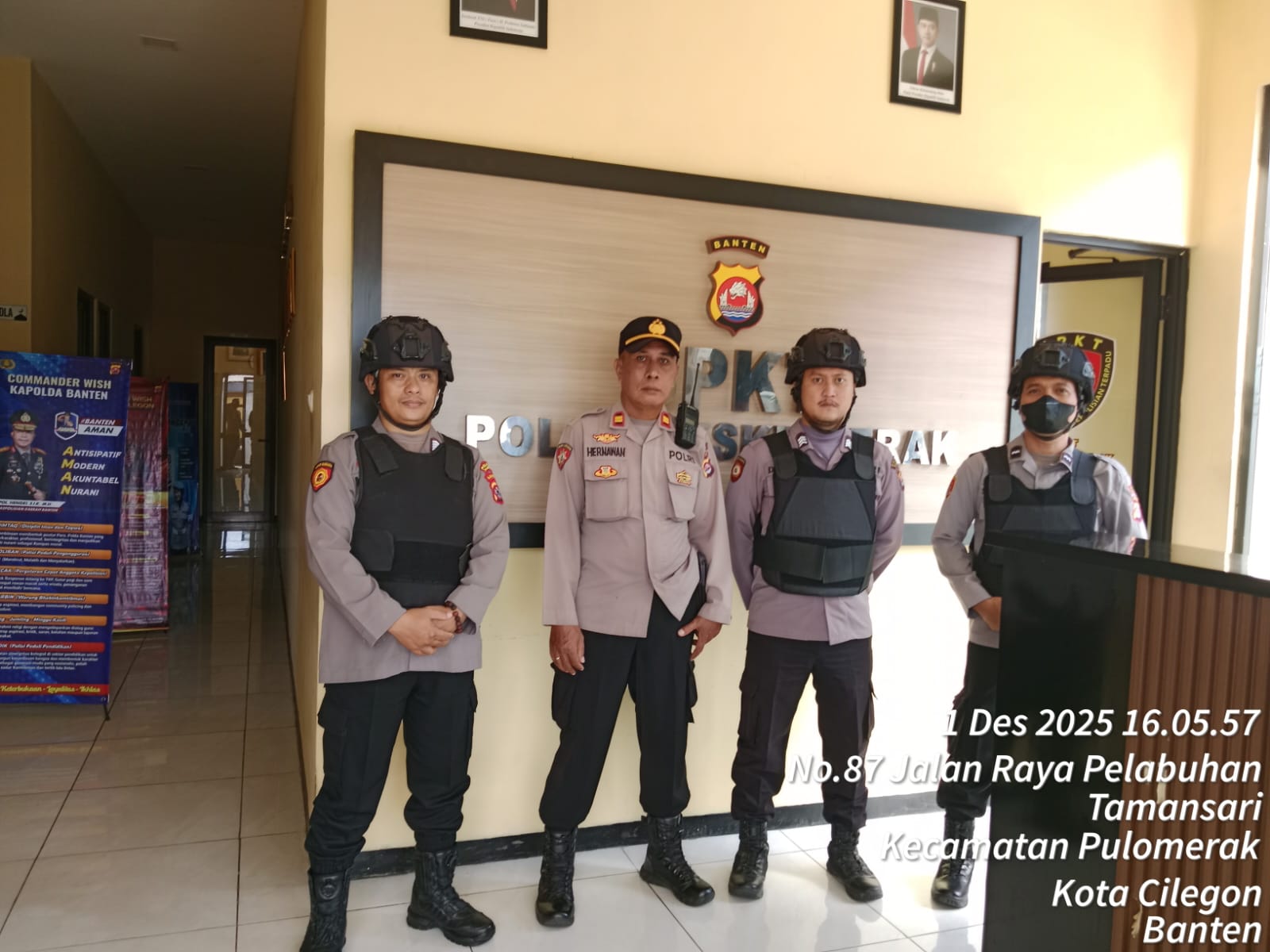 Cilegon - Personel piket jaga Polsek Kskp Merak Polres Cilgon Polda Banten melaksanakan siaga 1 Polsek pelaksanaan Sispam Mako oleh piket siaga dipimpin oleh Kspk Polsek Kskpy Merak Polres Cilegon Polda Banten, Senin (01/12/2025).